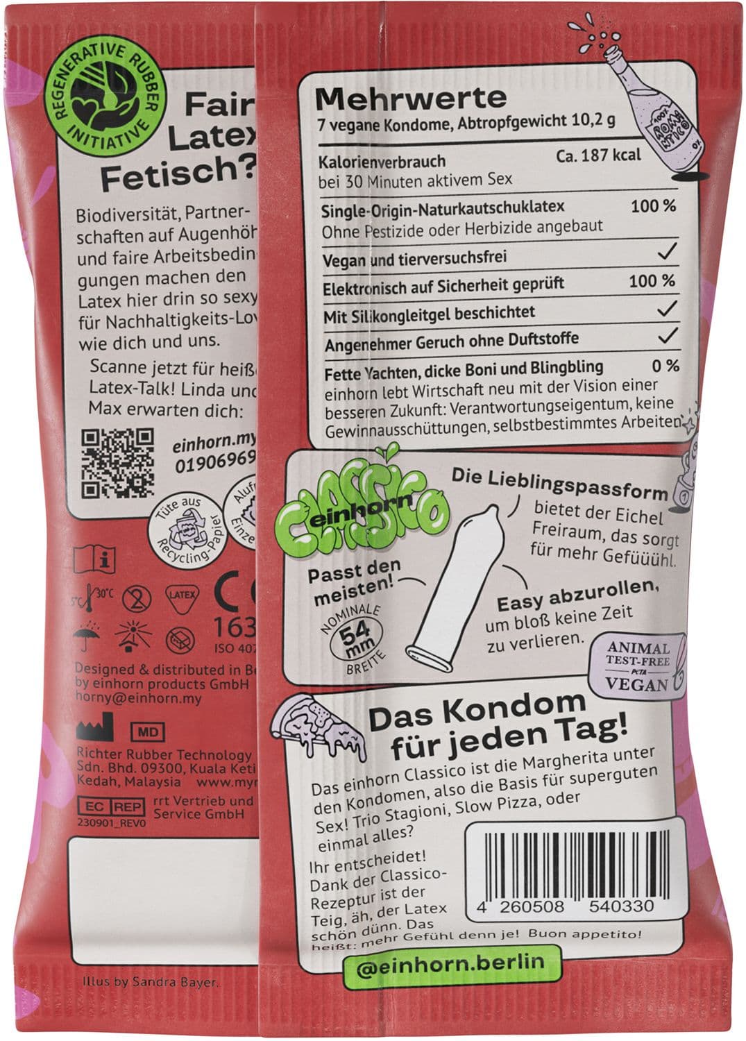 Die einhorn classico Kondome bieten ein gefühlsechtes Erlebnis und sind für besondere Momente konzipiert. Sie präsentieren sich in einer kunstvoll gestalteten Verpackung, die den unkonventionellen Charakter der Marke unterstreicht.
