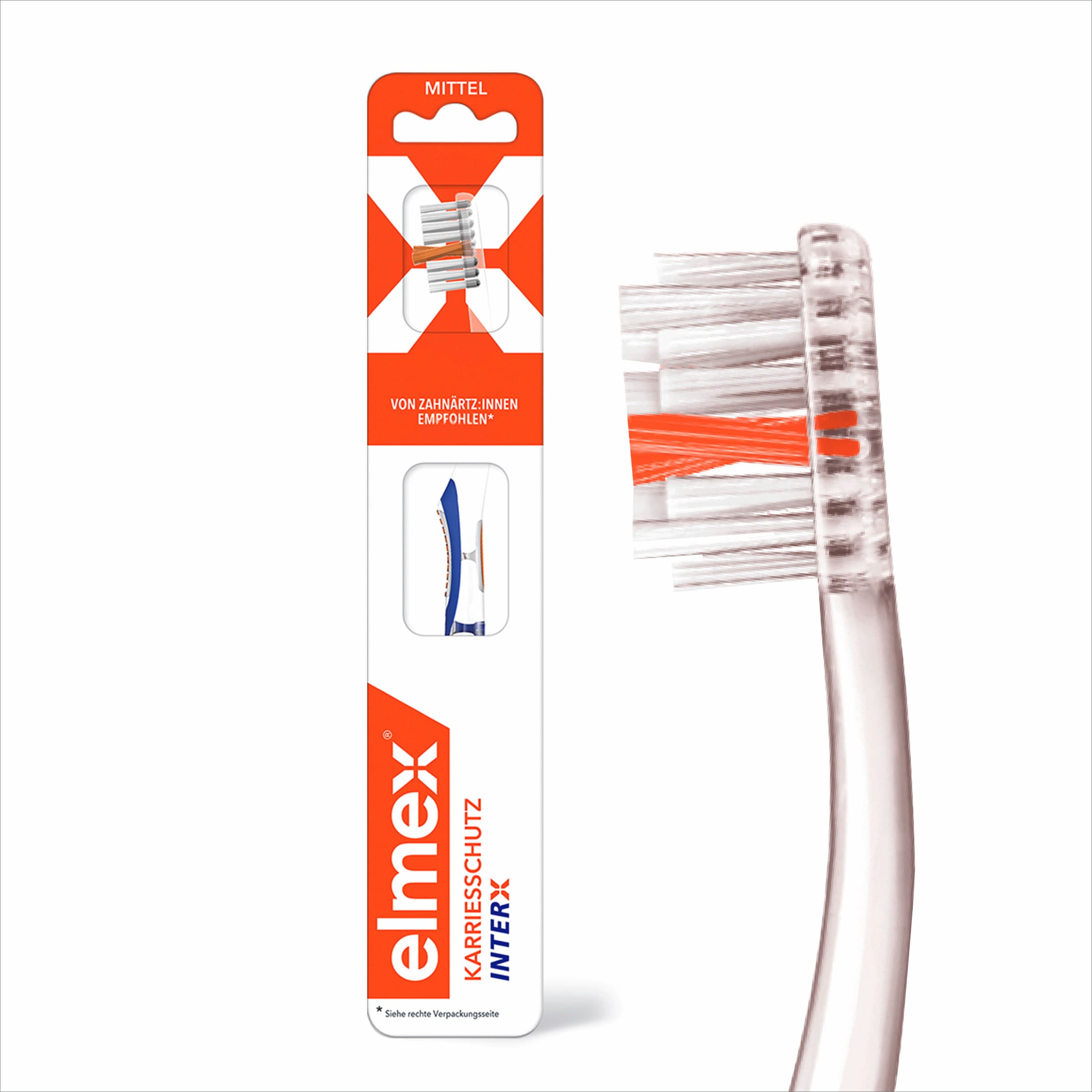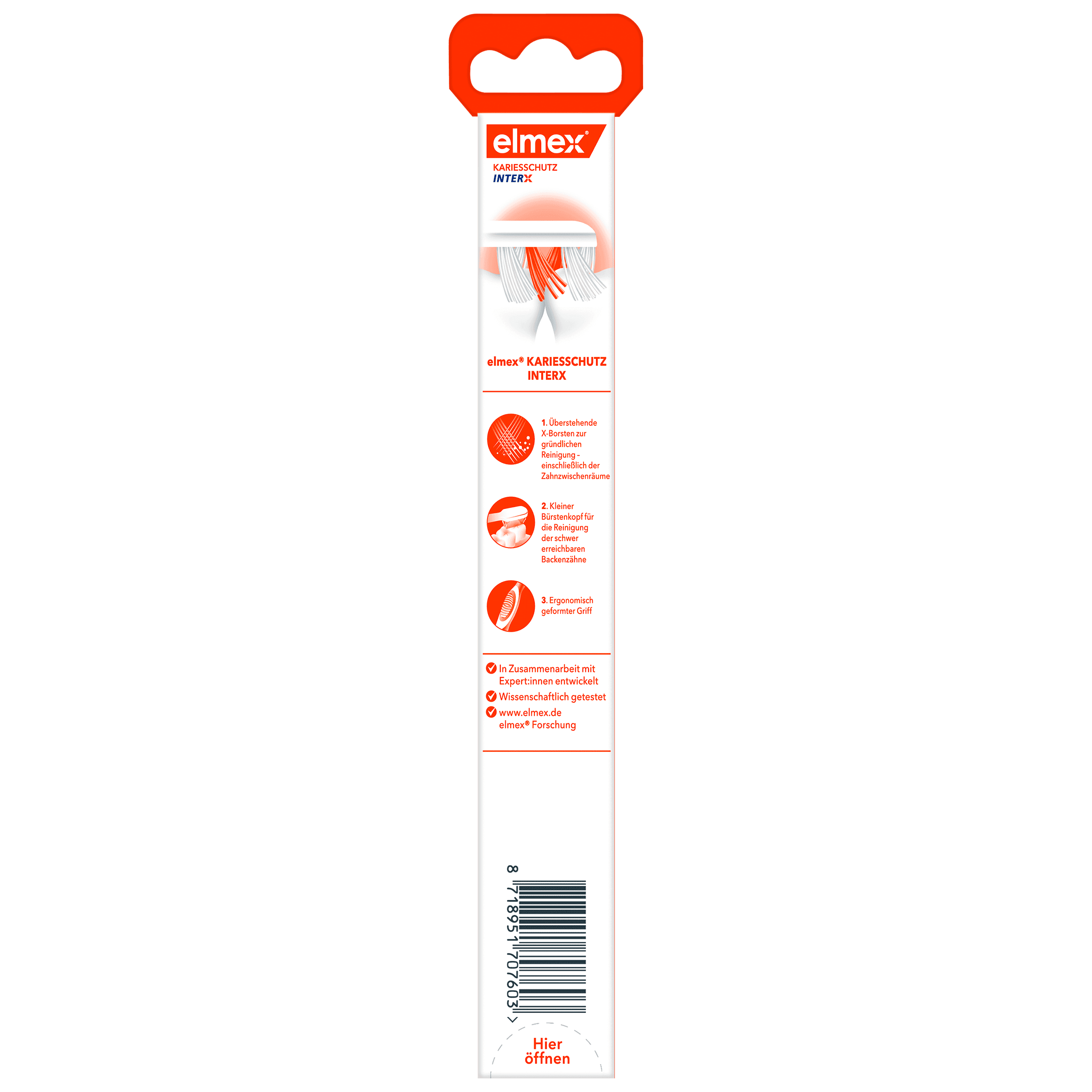 - Details & Lieferumfang – elmex Kariesschutz Zahnbürste InterX Mittel, effektive Reinigung mit X-Borsten bis in die Zahnzwischenräume, Bürste mit Kurzkopf für den täglichen Gebrauch, 1 Stück