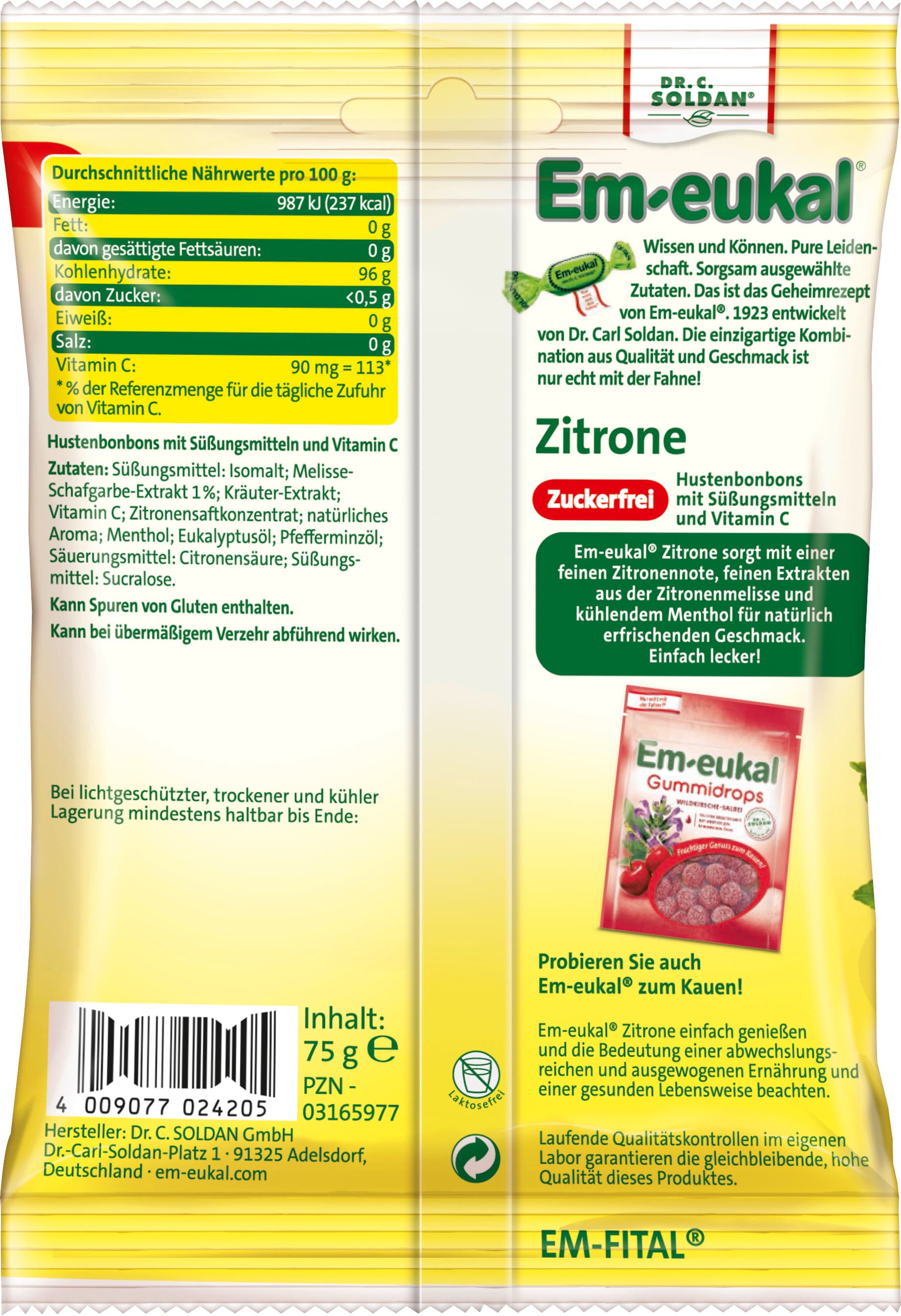 Zitronig lecker. Und natürlich erfrischend.Das spritzige Premiumbonbon mit einer angenehmen Zitronen¬note, feinen Extrakten aus der Zitronenmelisse und kühlendem Menthol. Für ein herrlich erfrischendes, fruchtiges Geschmackserlebnis.- Hustenbonbons mit Süßungsmitteln und Vitamin C- mit leichter Mentholnote- zuckerfrei- „Nur echt mit der Fahne“® – Garant für höchste Premiumqualität und Bonbonkochkunst