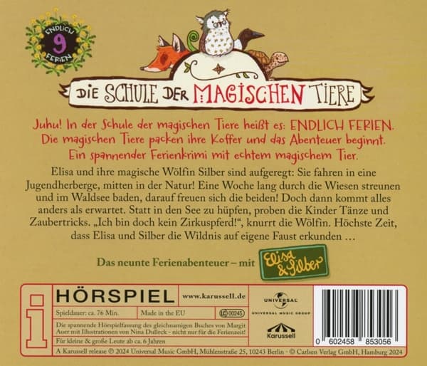 | 2 | | Die Schule der magischen Tiere | Endlich Ferien 09: Elisa und Silber - Teil 01 (3 Minutes Digital Version) | 00:03:06 |