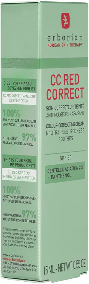 Mit Panthenol und 2 % Centella Asiatica formuliert, um die Pflegewirkung zu verstärken, hat CC Red Correct einen sofortigen und langanhaltenden beruhigenden Effekt und reduziert Rötungen auch auf ungeschminkter Haut. Tag für Tag wirkt die Haut sichtbar verwandelt und schöner.