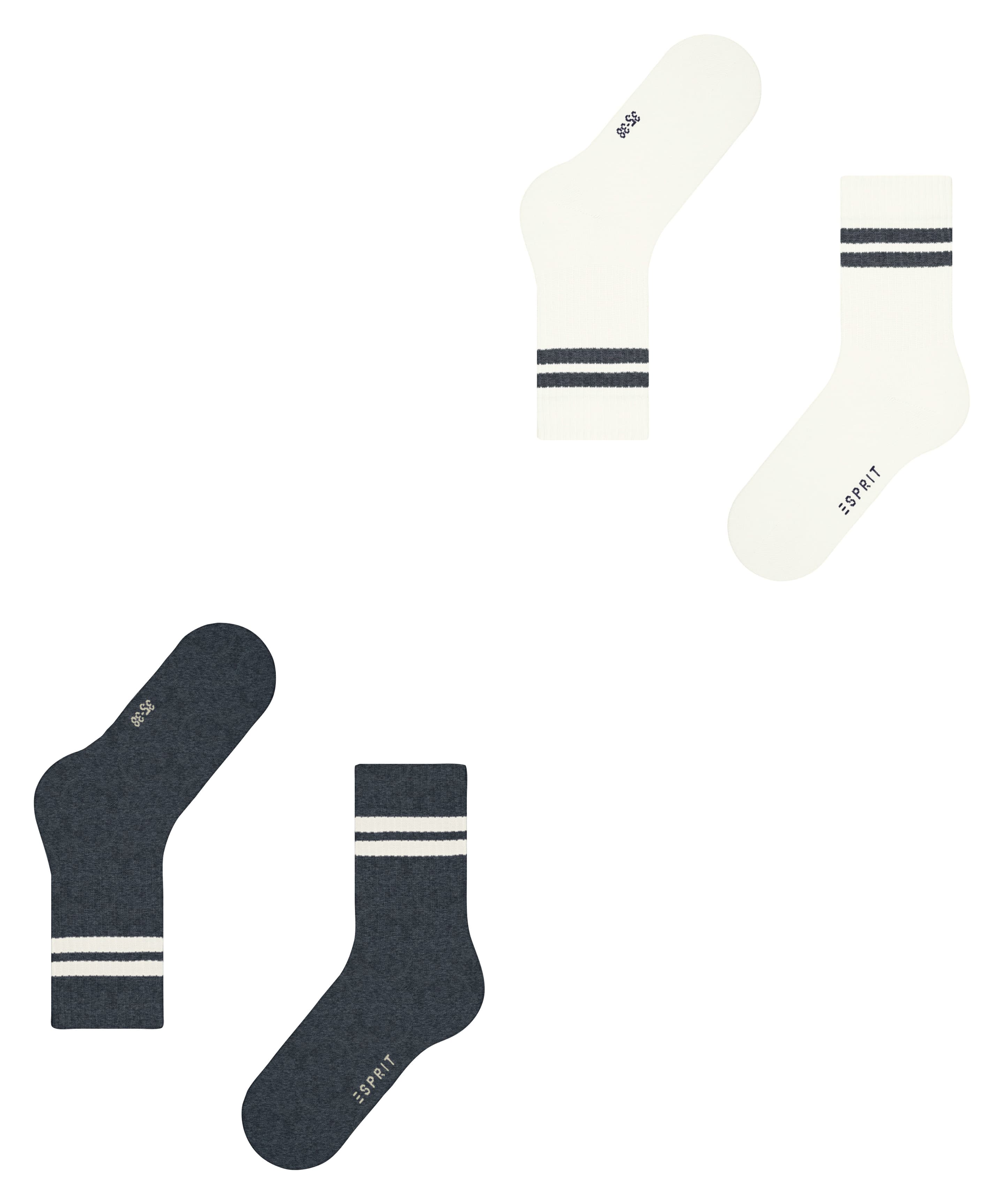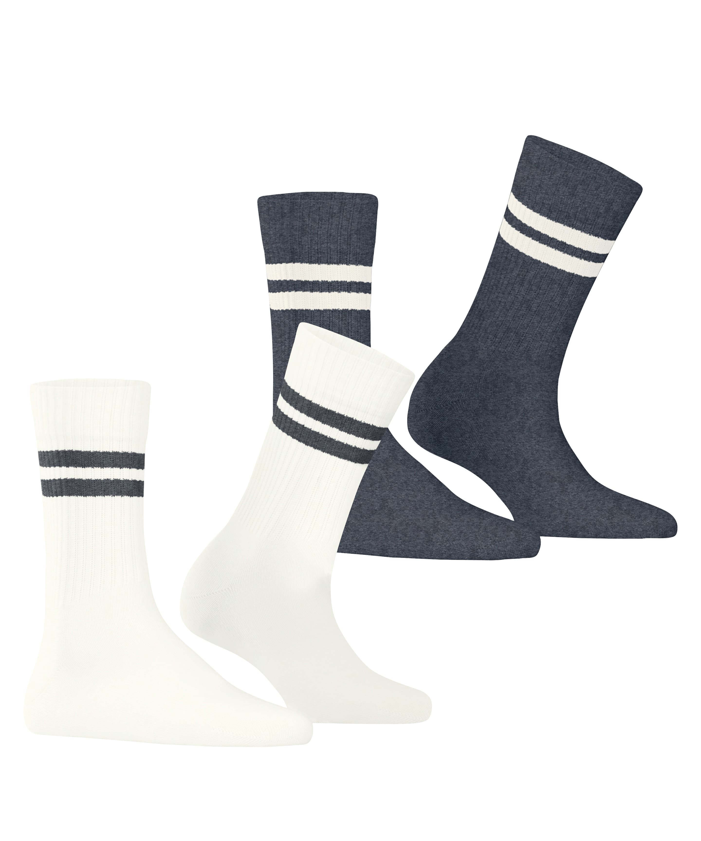 Die Damen-Socke interpretiert den Tennis-Look auf feminine Weise, denn die klassische Rippenstruktur am Schaft wird von farbigen Akzentstreifen veredelt. Die Ringel bringen einen glamourösen Touch in das sportliche Design der Strümpfe. Das 2er-Pack sorgt mit zwei unterschiedlichen Designs für Abwechslung.