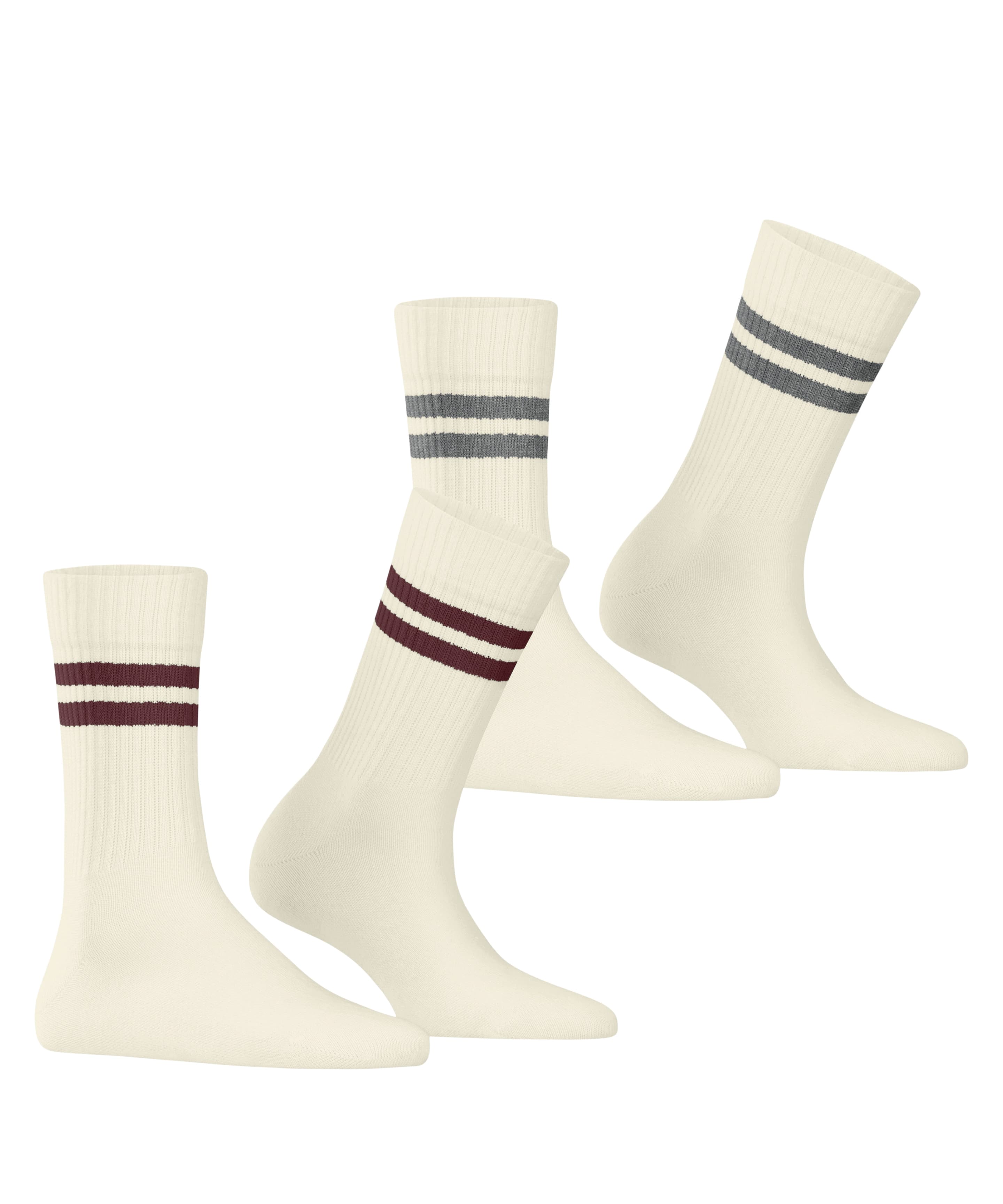 Die Damen-Socke interpretiert den Tennis-Look auf feminine Weise, denn die klassische Rippenstruktur am Schaft wird von farbigen Akzentstreifen veredelt. Die Ringel bringen einen glamourösen Touch in das sportliche Design der Strümpfe. Das 2er-Pack sorgt mit zwei unterschiedlichen Designs für Abwechslung.