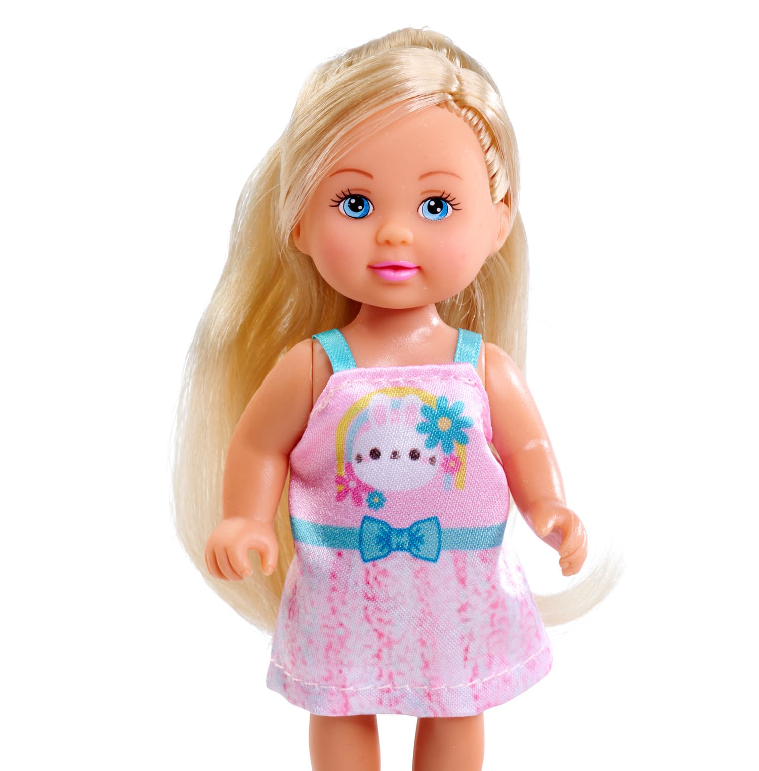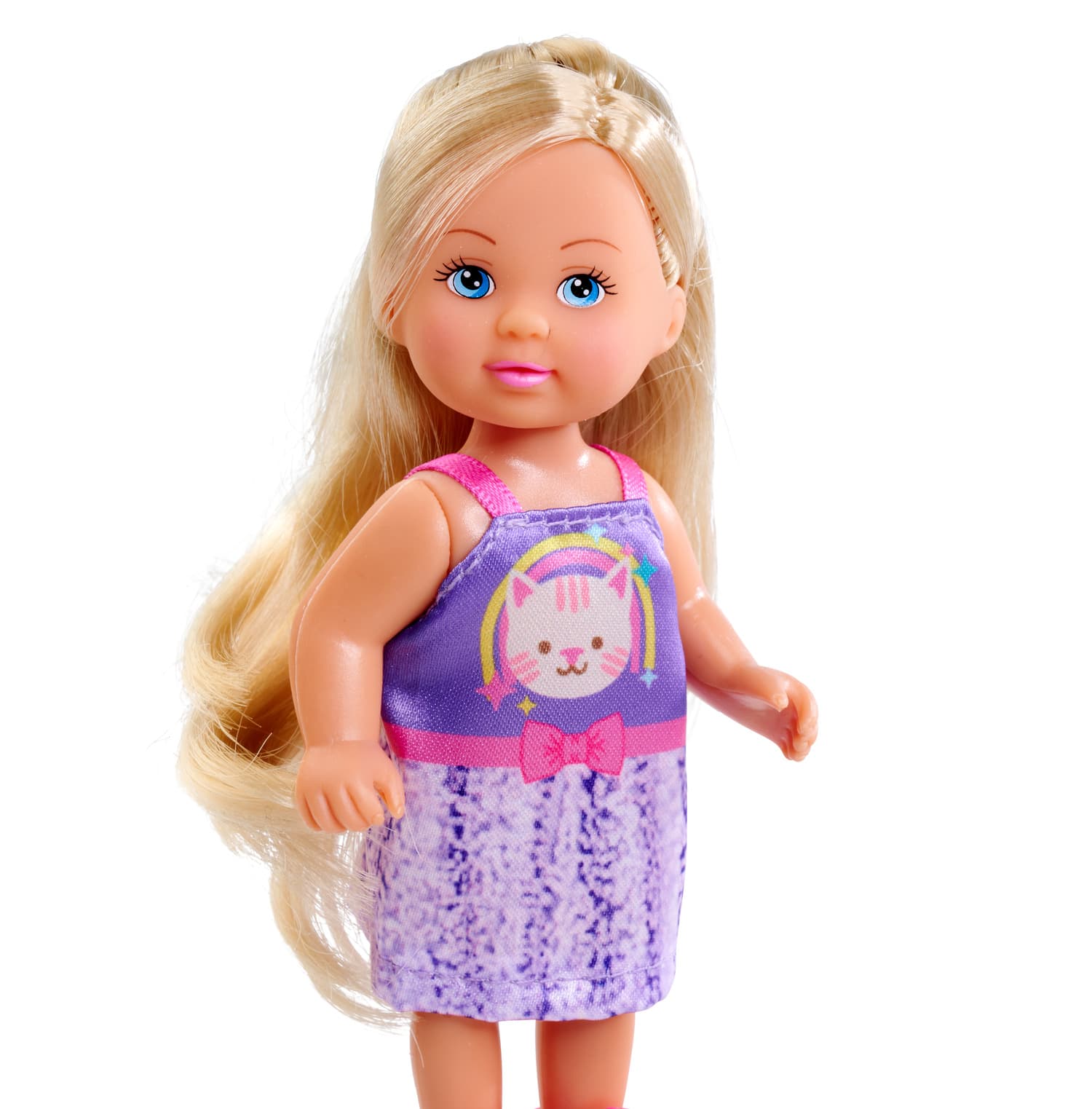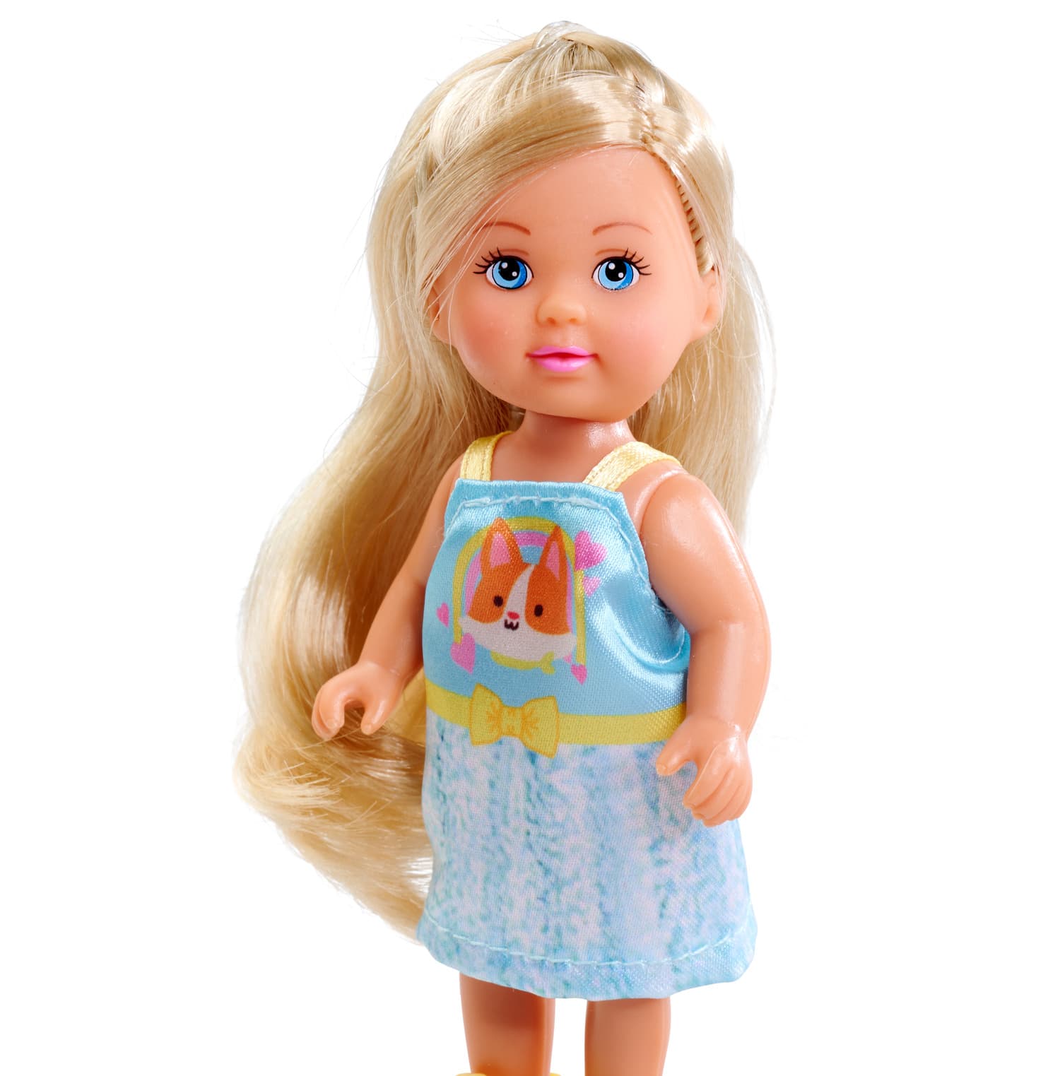 • Evi im Kleid – die 12cm große Evi trägt ein süßes Kleid mit Tiermotiv auf der Front. Sie ist in drei Varianten (Katze, Hase oder Hund auf dem Kleid) erhältlich.