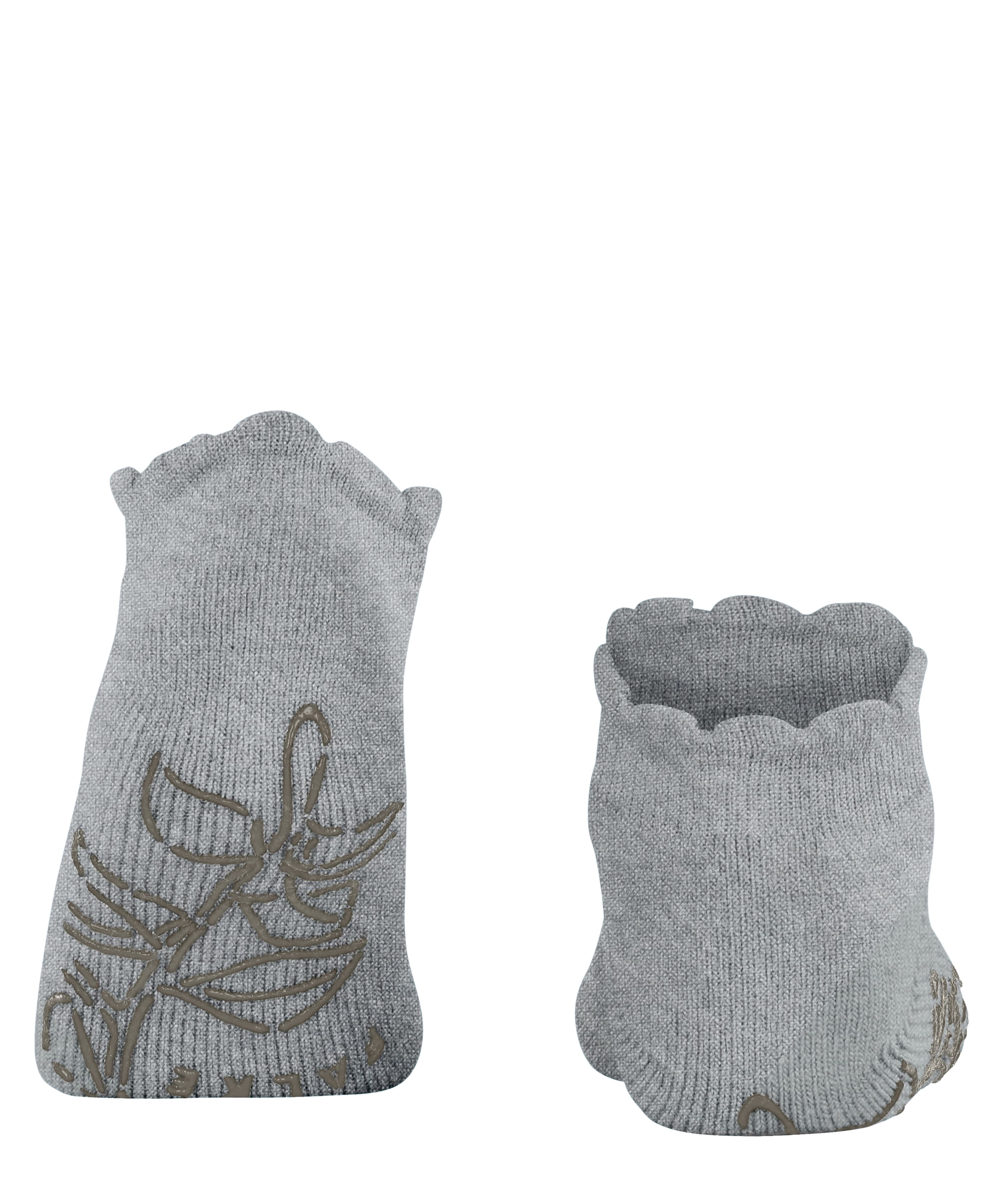 Dieser kuschelige Artikel besticht durch das luxuriöse Material, das elegante Abschlussbündchen und seine femininen Akzente in der Sohle. Die wärmende Wollmischung mit Wolle, Kaschmir sowie Viskose halten Ihre Füße angenehm warm. Zusammen mit der besonderen Optik wird er zu einem optimalen Begleiter für gemütliche Stunden zuhause. Der rutschhemmende Noppendruck auf der Sohle sorgt für besseren Halt. Durch den innenliegenden Plüsch und die perfekte FALKE-Passform entsteht ein besonders angenehmes Tragegefühl.
