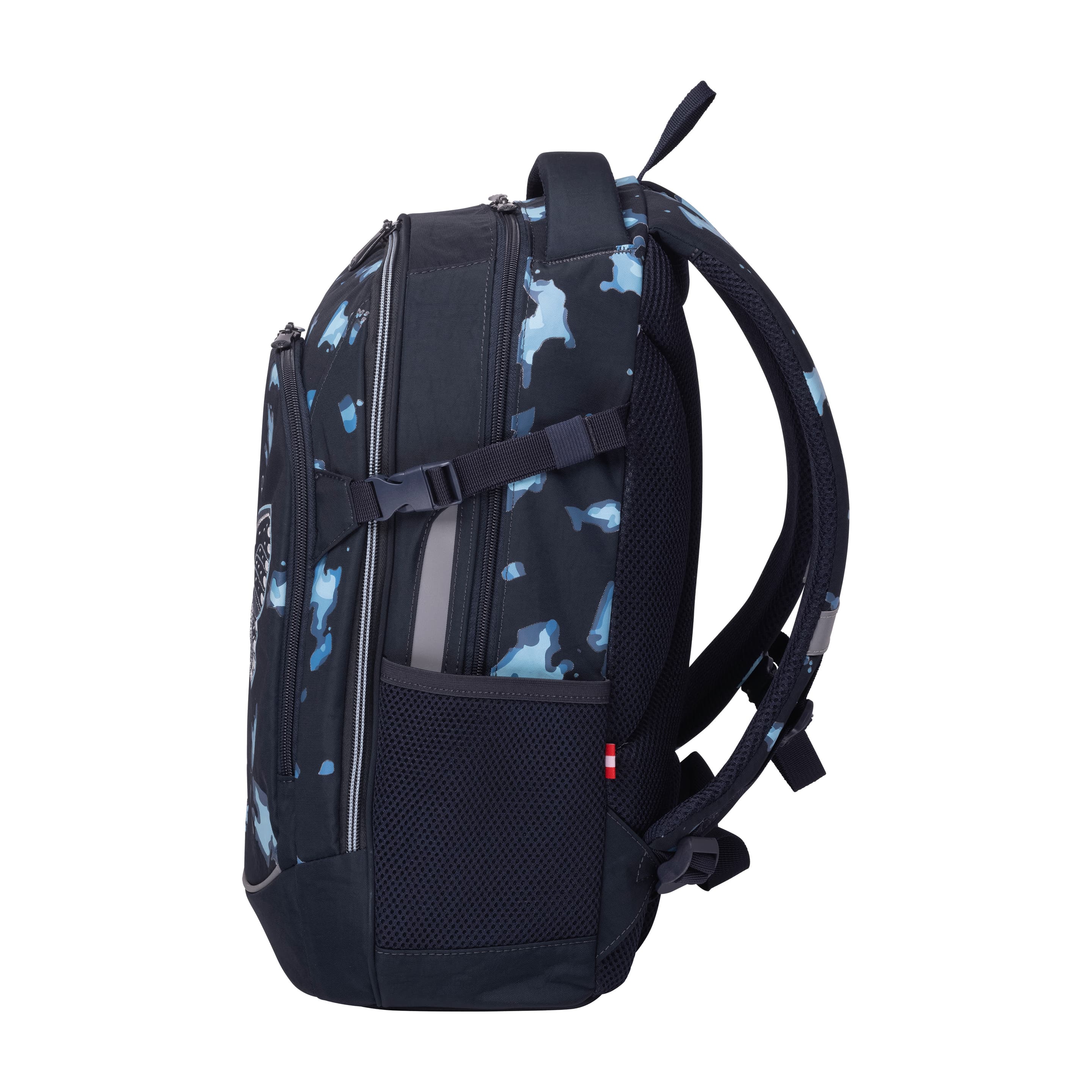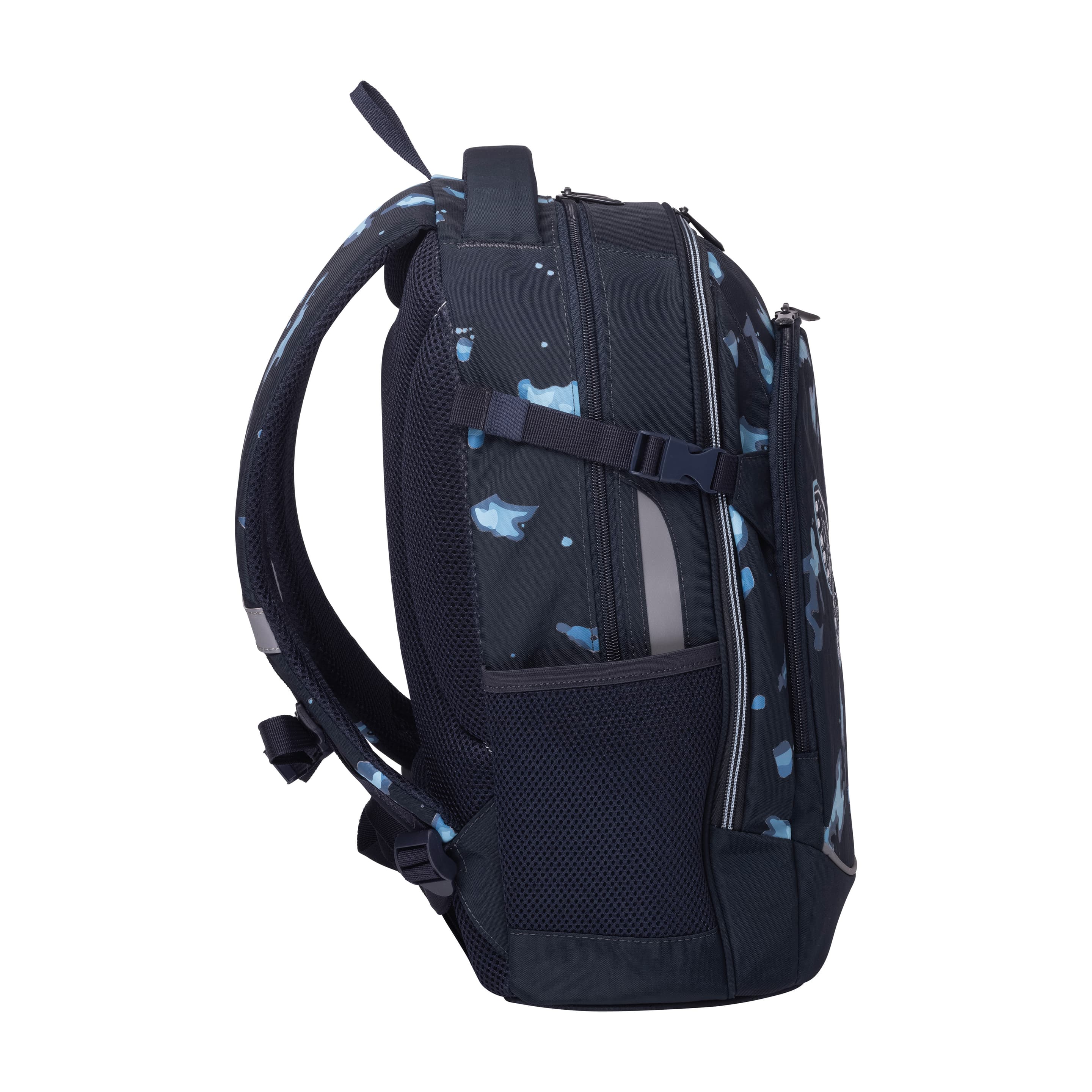 großes Hauptfach mit flexibler Innenaufteilung, gut gepolstertes Laptopfach und Tabletfach (max. 15"), Mittleres Fach, Vorderfach mit Organizer und Zippfach, Seitentaschen für Getränkeflaschen, Tragegriff, Aufhängeschlaufe, Reflektierende Elemente, LED-Piping mit coolem Leuchteffekt bei ausgewählten Modellen, atmungsaktives 3D AirMesh, ergonomischer Rücken , ergonomisch geformte Schulterriemen, höhenverstellbarer Brustgurt, Kompressionsriemen