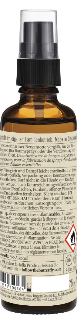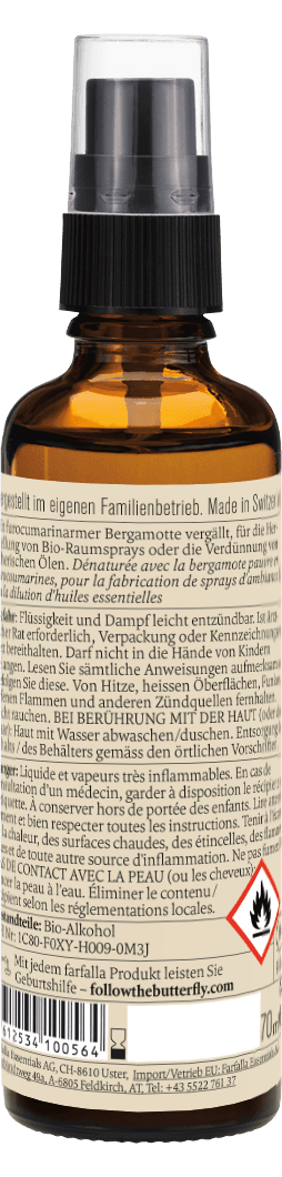 Mit furocumarinarmer Bergamotte vergällt, für die Herstellung von Bio-Raumsprays oder die Verdünnung von ätherischen Ölen.