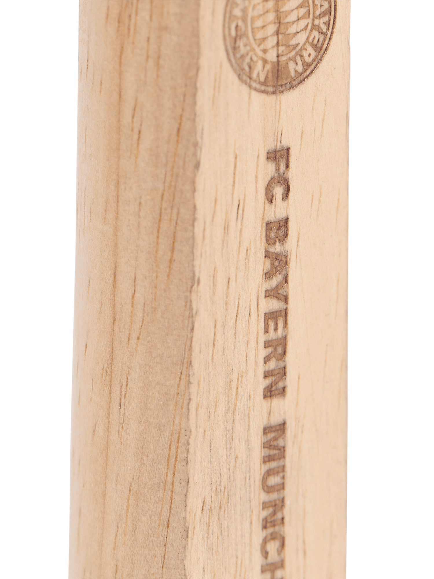 Flaschenöffner aus Holz mit FC Bayern München Logo.