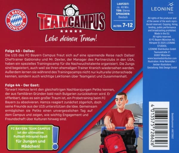 | 13 | | Brosch, Robin / Greis, Julian / Kreuer, Tim / Tasbilek, Ugur / Krause, Matti / +++ | FC Bayern Team Campus (Fußball) (CD 22): Dallas (Folge 43) / Der Gast (Folge 44) | 00:03:15 |