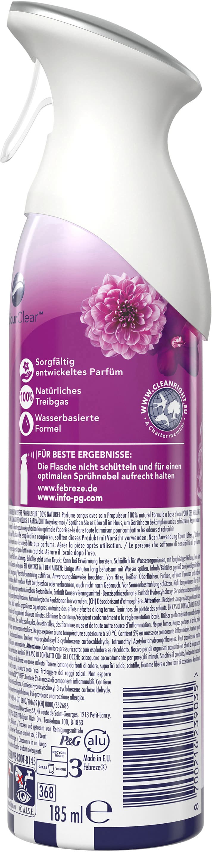 Febreze Lufterfrischer Spray mit FrischeLuft-Technologie bekämpft hartnäckige Gerüche und hinterlässt einen frischen Duft. Der Duft „Amethyst Blütentraum"schafft ein warmes, einladendes Ambiente in Ihrem Zuhause. Im gesamten Haus versprühen, um Gerüche zu bekämpfen und zu erfrischen. Febreze Lufterfrischer sind nicht entflammbar und in einem breiten Sortiment an Düften erhältlich.