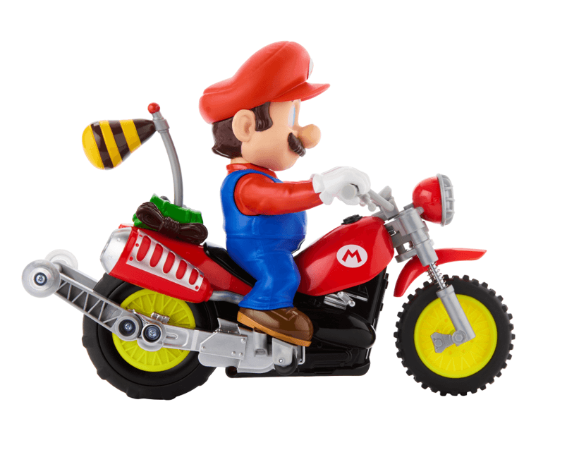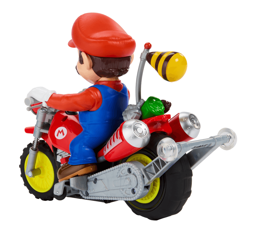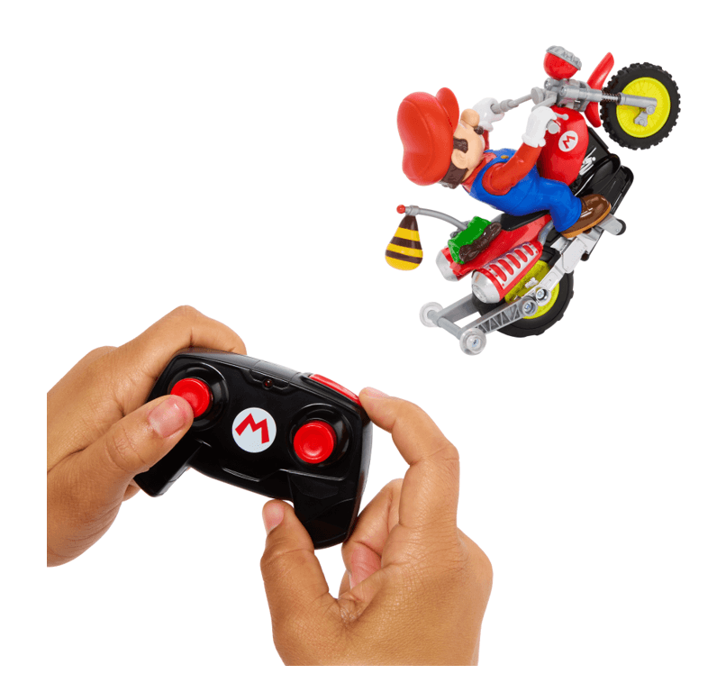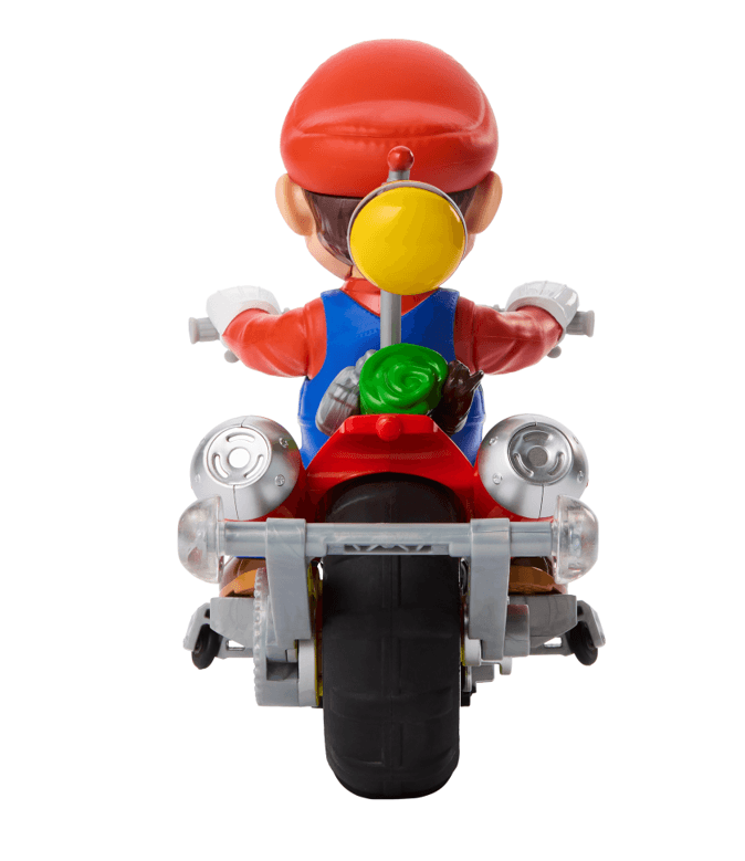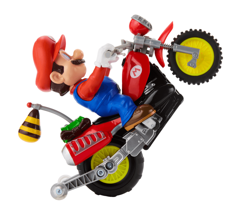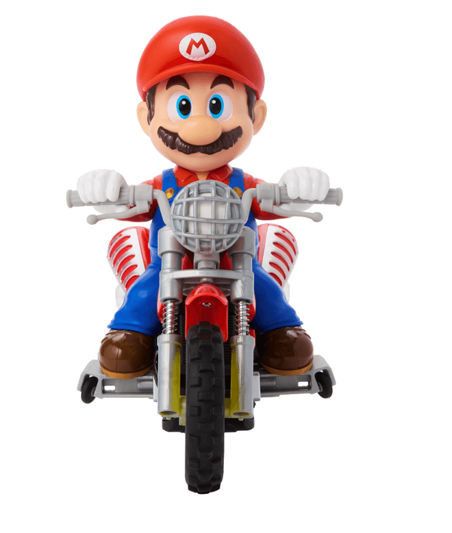 Mit dem ferngesteuerten Hot Wheels Mario Kart Wheelie Motocross sind die spektakulären Wheelies aus dem Film auch zu Hause möglich. Fans können mit der Fernbedienung Mario wie im Film Rennaction und Stunts auf seinem Motorrad erleben lassen. Beim One-Touch-Wheelie-Stunt zeigt Mario einen Wheelie und lenkt so seine Gegner ab, um zum Helden des Tages zu werden. Wenn er in die Kurven rast, neigt sich sein Kopf genau wie im Film. Fans können ihre Lieblingsmomente aus dem Film nachspielen oder sich mit dem ferngesteuerten Fahrzeug mit Hinterradantrieb völlig neue Szenen ausdenken. Abweichungen in Farbe und Gestaltung vorbehalten.