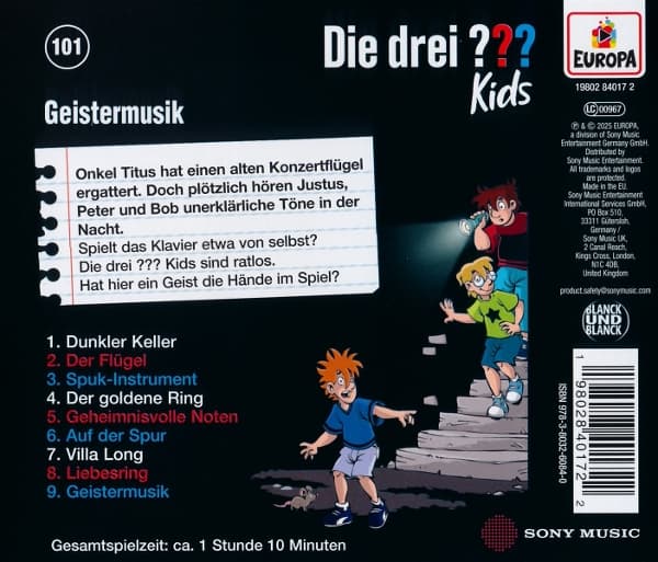 | 9 | | Die drei ??? Kids | 101 - Geistermusik - 9. Geistermusik | 00:11:49 |