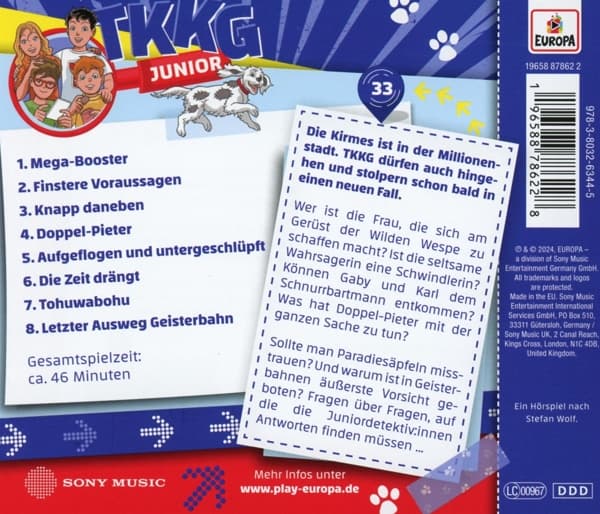 | 4 | TKKG Junior | 33 - Wirbel um die Wilde Wespe - 4. Doppel-Pieter | 00:05:30 | |