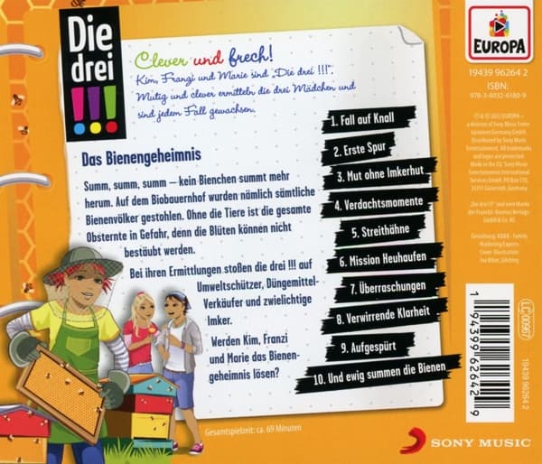 | 3 | Die drei !!! | 78 - Das Bienengeheimnis - 3. Mut ohne Imkerhut | 00:07:40 | |