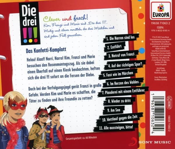 | 3 | Die drei !!! | 82 - Das Konfetti-Komplott - 3. Notruf von Franzi | 00:05:49 | |
