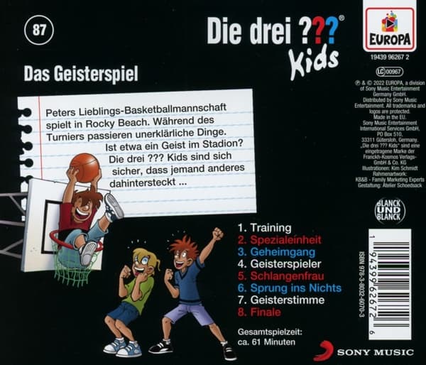 Ein spannender Fall für Justus, Peter und Bob wartet auf der Hörspiel-CD „Die drei ??? Kids, Folge 87: Das Geisterspiel“. Auf dem Basketballplatz in Rocky Beach geschehen unheimliche Dinge, die die drei Detektive auf den Plan rufen.