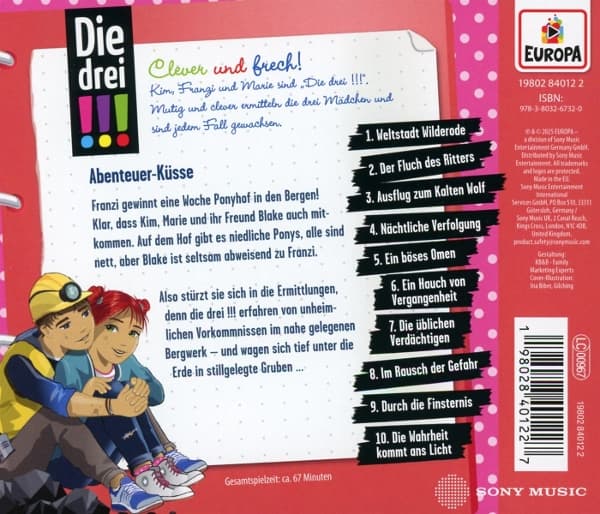 | 3 | Die drei !!! | 93 - Abenteuer-Küsse - 3. Ausflug zum Kalten Wolf | 00:08:05 | |
