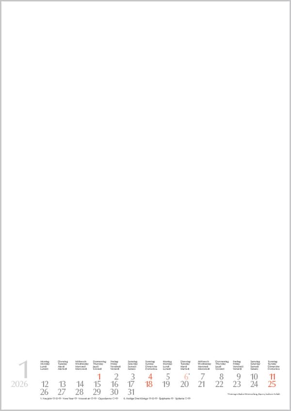 Produktmerkmale • Format: Din A4, weiß sehr stabile Rückwand, durchgefärbtes FSC Papier • Edler, extra starker Bastelkarton • Maximales Bildformat: Quer 20 x 15 cm, Hoch 18 x 24 cm • Beschreibbar und beklebbar, ohne dass etwas durchscheint • Mehrsprachiges Kalendarium mit Feiertagen für Deutschland, Österreich und Schweiz Hochwertiger Kalender zum Selbstgestalten mit dickem, weißem Papier Individuelle Gestaltung Lassen Sie Ihrer Kreativität freien Lauf und gestalten Sie Ihren persönlichen DIY-Kalender. Mit 12 Kalenderblättern und einem Titelblatt bietet er zahlreiche Möglichkeiten Ihren eigenen Wandkalender individuell zu gestalten. Kreative Geschenkidee Ob zu Weihnachten, zum Geburtstag, Muttertag oder Vatertag - der Kalender eignet sich perfekt als persönliches Geschenk für jeden Anlass. Photos, Collagen, witzige Sprüche oder Zeichnungen - Ihrer Fantasie sind bei der Gestaltung keine Grenzen gesetzt. Dekorativer Wandkalender Jeden Monat schmückt der Kalender mit Monatsansicht Küchen-, Schlafzimmer- oder Arbeitszimmerwände mit einer anderen schön verzierten Seite. Somit wird der selbst gestaltete Kalender zu einem ganz besonderen Wandschmuck