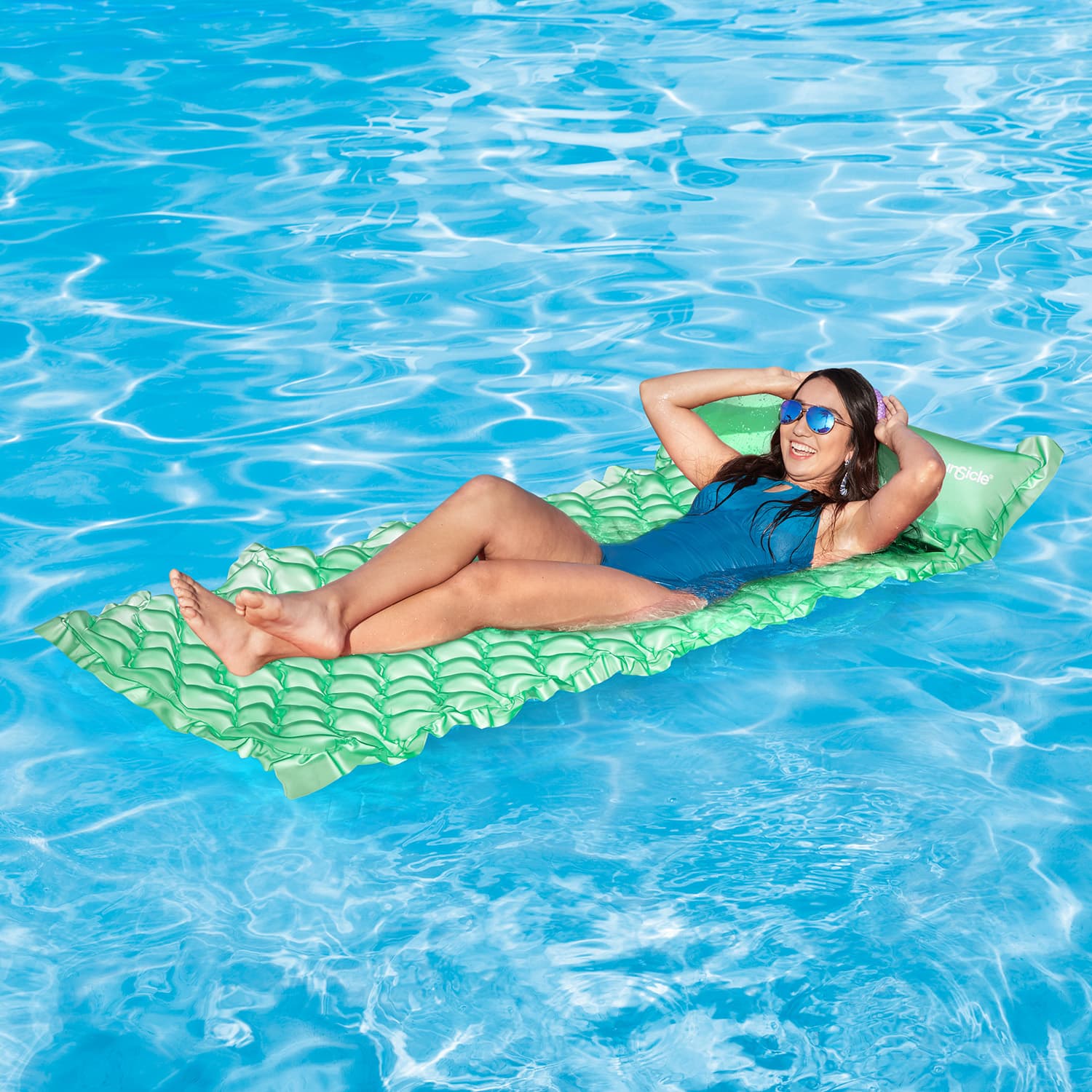 | Besonderheiten | • Aufblasbare 1,75 m Wassermatte für Pools, Strände und Seen • Bequeme Kopfstütze und gestepptes Design • EasyGrip-Luftventil: Rutschfeste Zuglasche zum einfachen Öffnen • DuraSeam: Doppelte Schweißnähte für zusätzliche Festigkeit und Leckageschutz • Reparaturflicken im Lieferumfang enthalten • Alter: ab 14 Jahren |