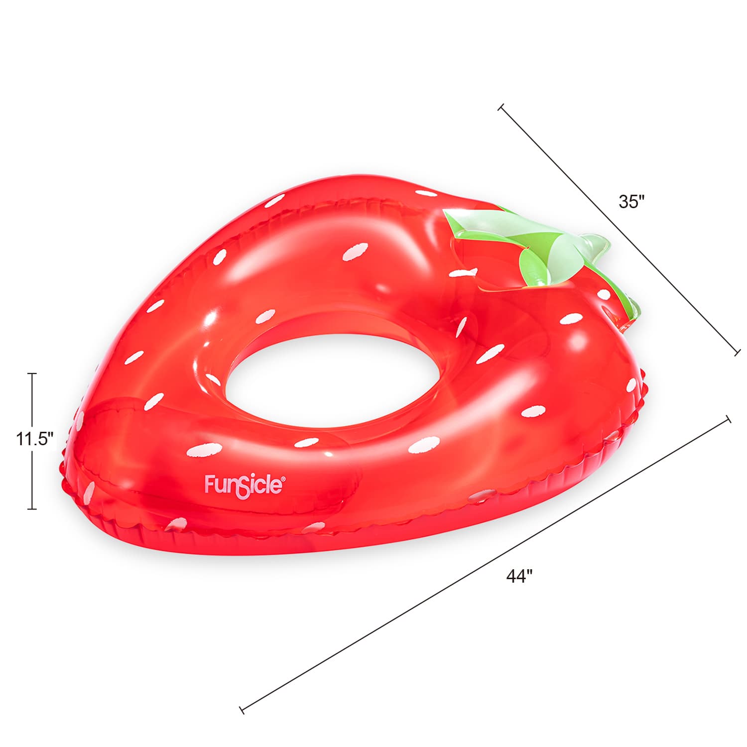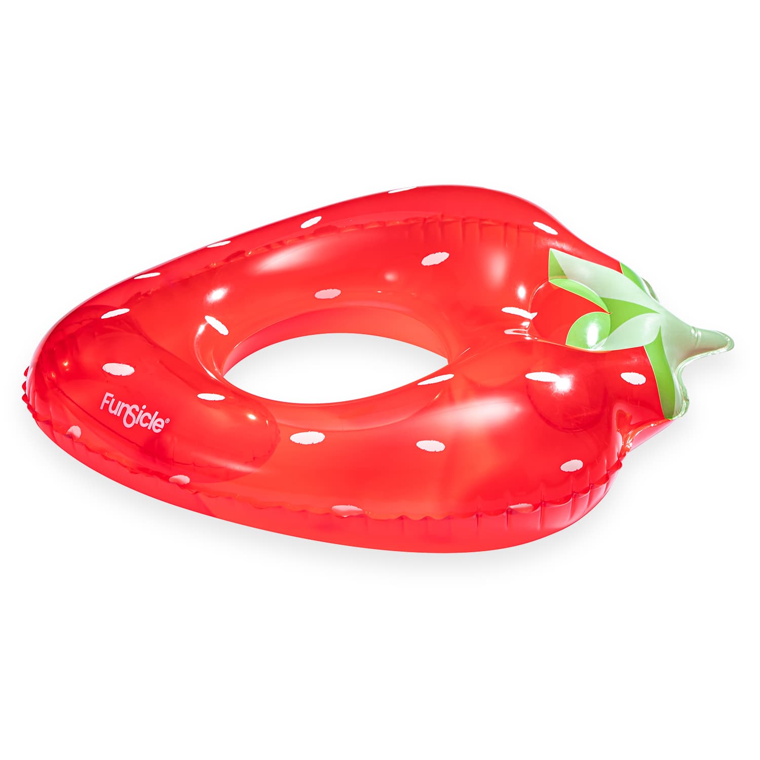 | Besonderheiten | • Aufblasbarer 1,12m Schwimmreifen für Pools, Strände und Seen • Lustige Erdbeerform sorgt für einen verspielten Touch • DuraSeam: Doppelte Schweißnähte für zusätzliche Festigkeit und Leckageschutz • Reparaturflicken im Lieferumfang enthalten • Alter: ab 9 Jahren |