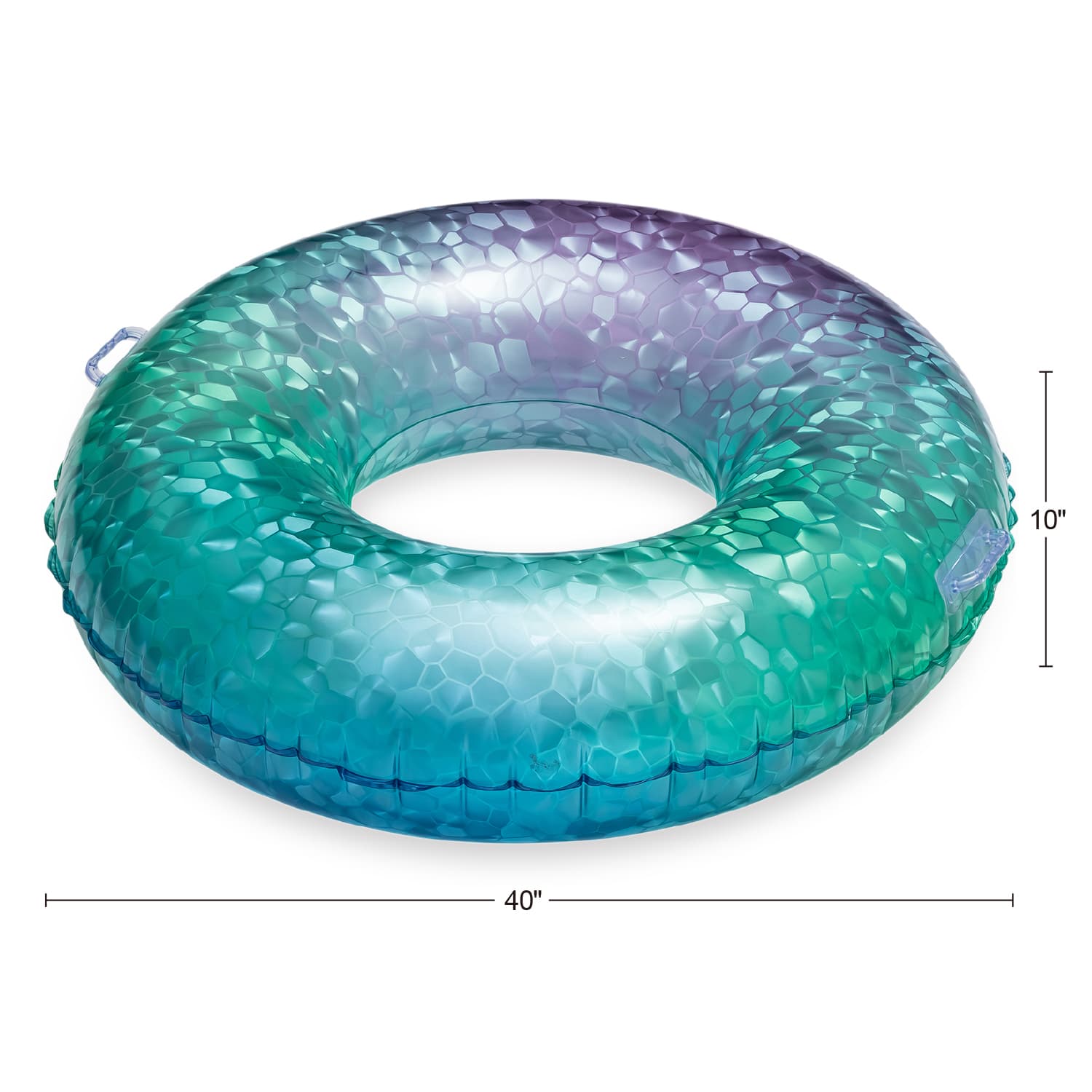 | Besonderheiten | • Aufblasbarer 1,02 m langer Schwimmreifen mit coolen Ombré-Farben • Funkelnde Edelsteinmuster glänzen in der Sonne • Zwei feste Griffe • DuraSeam: Doppelte Schweißnähte für zusätzliche Festigkeit und Leckageschutz • Reparaturflicken im Lieferumfang enthalten • Alter: ab 9 Jahren |