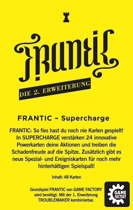 Wichtig: Diese Erweiterung ist nur in Kombination mit FRANTIC spielbar und lässt sich auch mit der 1. Erweiterung TROUBLEMAKER kombinieren.
