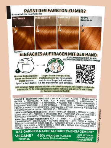 • Die Garnier GOOD Dauerhafte Haarfarbe bietet bis zu 100% Grauabdeckung und bis zu acht Wochen langanhaltende Farbe