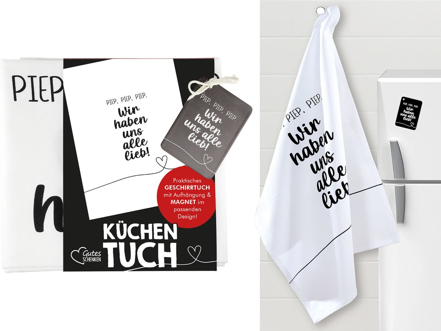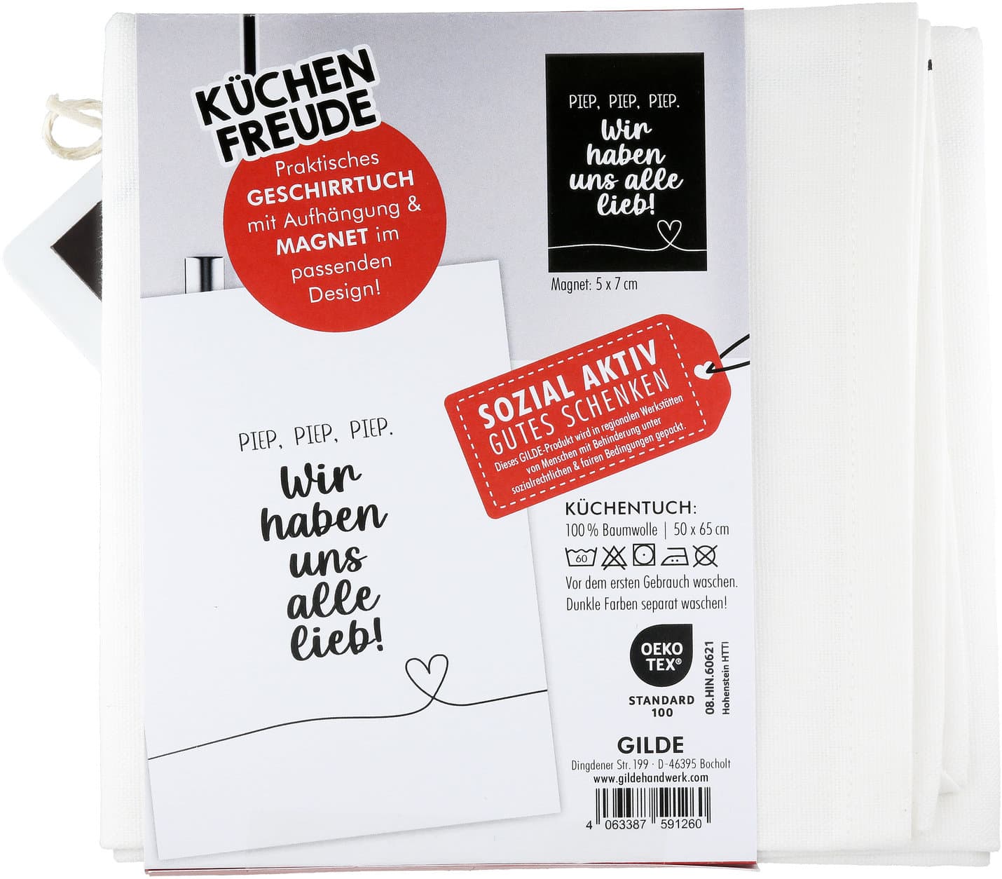 GILDE Magnet Geschirrtuch Wir haben uns alle Lieb!