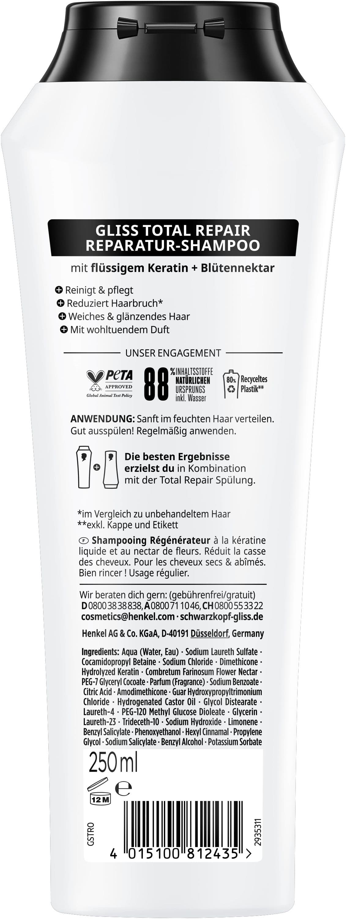 Gliss Total Repair Shampoo – Repair Shampoo für trockenes, geschädigtes Haar