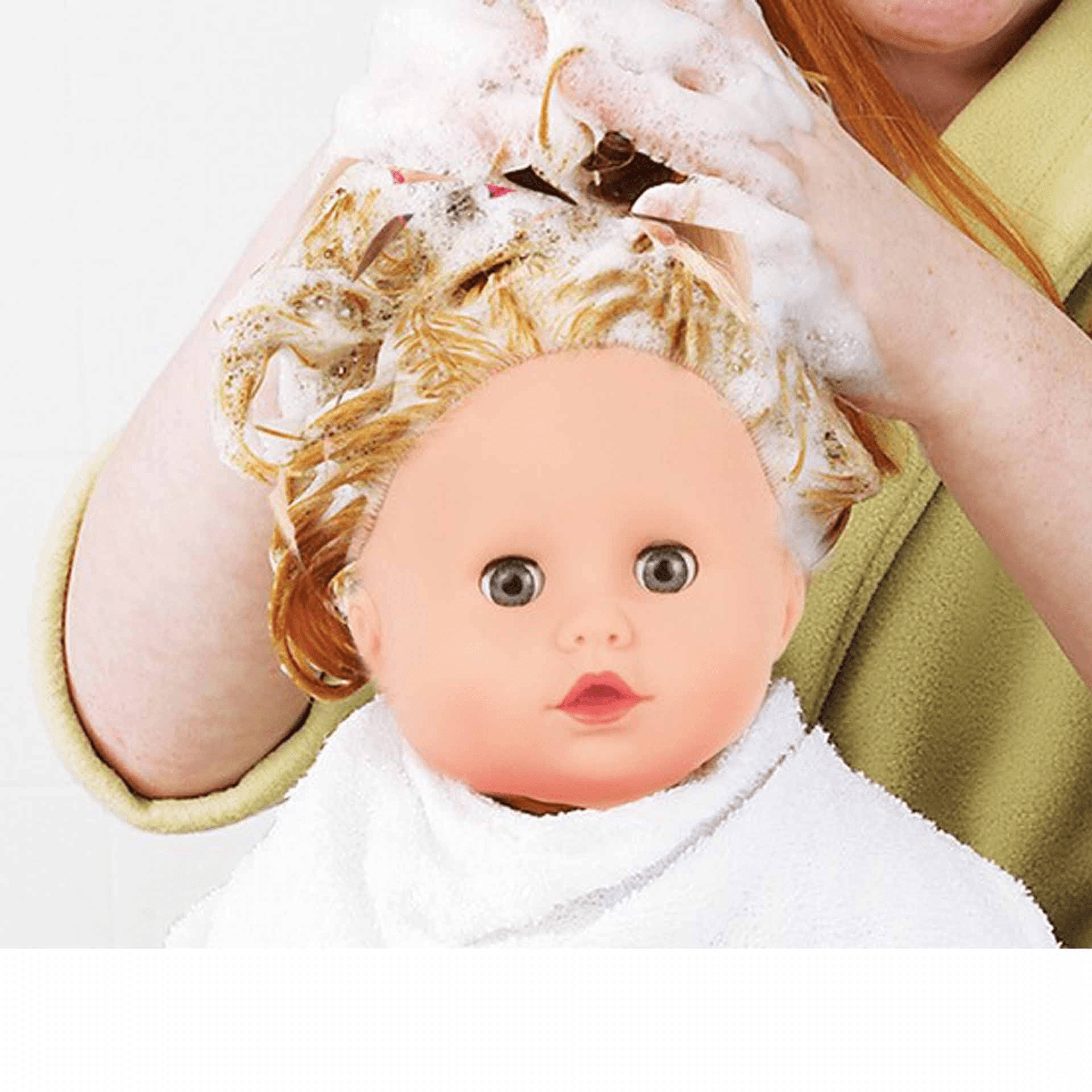 Dank der Schlafaugen, des beiliegenden Schnullers und der sorgfältig verarbeiteten Details wirkt die Puppe besonders lebendig. Der weiche Körper ist waschmaschinen- und trocknergeeignet, sodass die Pflege kinderleicht bleibt.