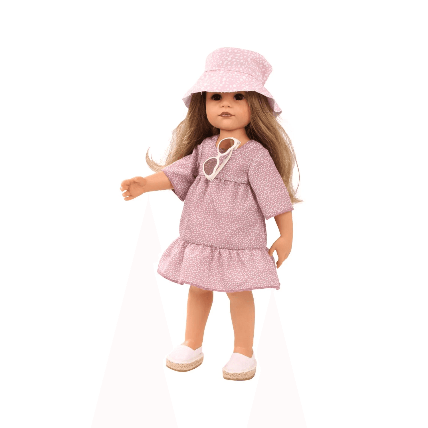 Götz - Kombi Blumen XL, 5‑teiliges Sommeroutfit mit Kleid, Hut, Espadrilles & Sonnenbrille für Stehpuppen 45–50 cm