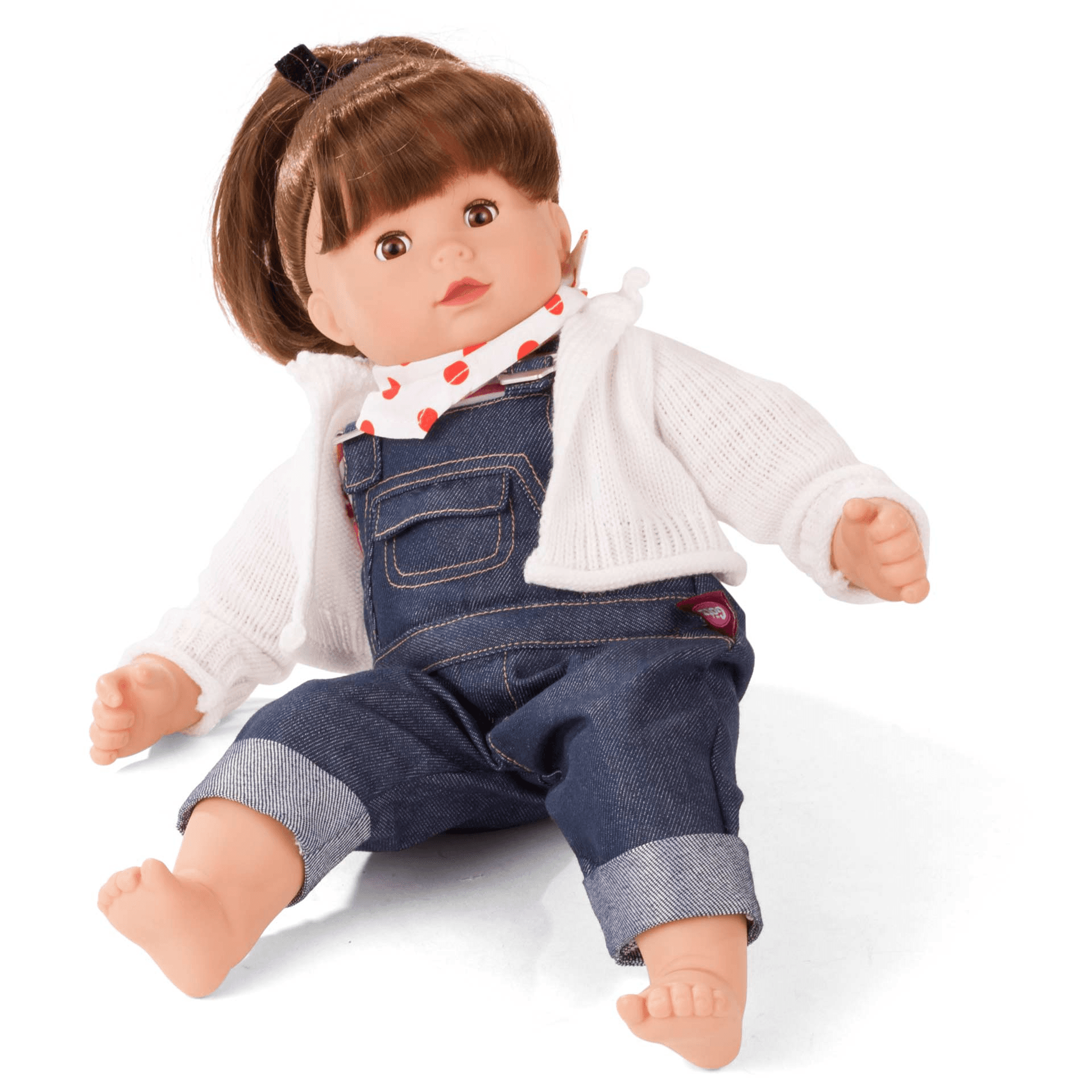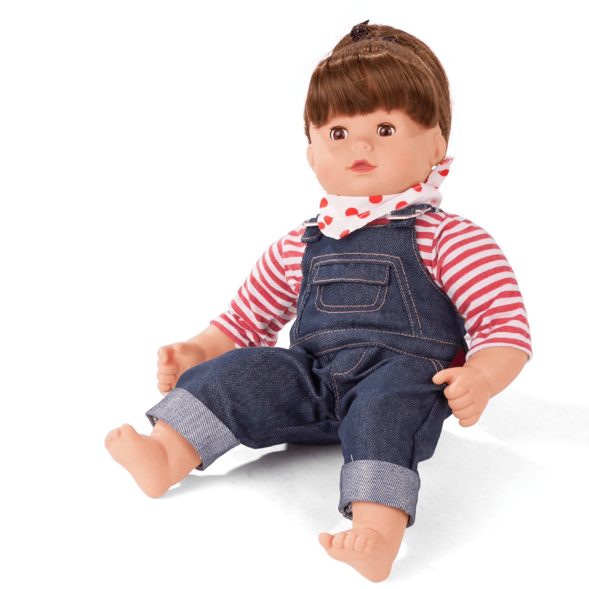 Götz - Latzhosenset „Matrose“, 4‑teilig, für Babypuppen Größe M (42–46 cm), inkl. Strickjacke, Shirt, Latzhose &