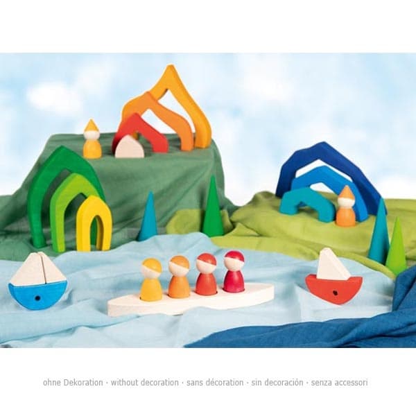 Die liebevoll gestalteten Figuren werden aus Ahornholz gefertigt und sind Made in Europe. Durch ihr neutral gehaltenes Äußeres regen sie die Phantasie an und sind bestens geeignet für freies Spielen- ihren Charakter bekommen sie durch ihre jeweils individuelle Holzstruktur und die leuchtende Lasierung. Wollen die vier Freunde aus Holz mit ihrem Boot ankern, findet sich mit goki evolution eine Welt voller Möglichkeiten für kleine Abenteurer: ein Besuch im Zwergenhaus oder doch vielleicht ans Ende des Regenbogens?goki evolution liefert das Material, die haptischen und visuellen Anreize für ein Spiel voller Freude am Selbstgestalten und Ausprobieren. evolution bedeutet Entwicklung, evolution schafft Vielfalt, evolution hört niemals auf, findet immer statt – in jedem Kinderzimmer. goki evolution begleitet diese Entwicklung mit ausgewählten Holzqualitäten, einer exklusiven harmonisch aufeinander abgestimmten Farbwelt – natürlich mit einem hohen Sicherheitsstandard – und bester handwerklicher Fachkompetenz.Bestens geeignet für offenes SpielSamtige Oberfläche für guten HaltMade in EuropeAhornholz aus nachhaltiger ForstwirtschaftViele ErgänzungsmöglichkeitenArtikelnummer: 58469Altersempfehlung: 2+Herkunft: Made in EuropeMaterial: HolzAnzahl-Teile: 5Artikelmaß: 24 cm