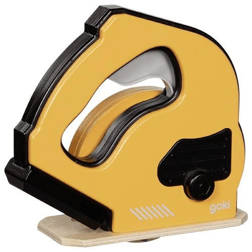 Drücke den grauen Griff und das Sägeblatt setzt sich in Bewegung.