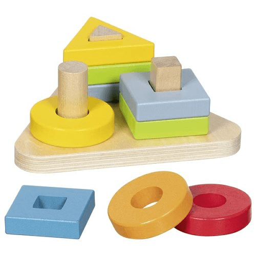 Nice ist das Stapelspiel. Nice ist der Preis. Stapeln mit Formen und Farben. Die Formstäbe sind auf die Formen der zu stapelnden Elemente abgestimmt.