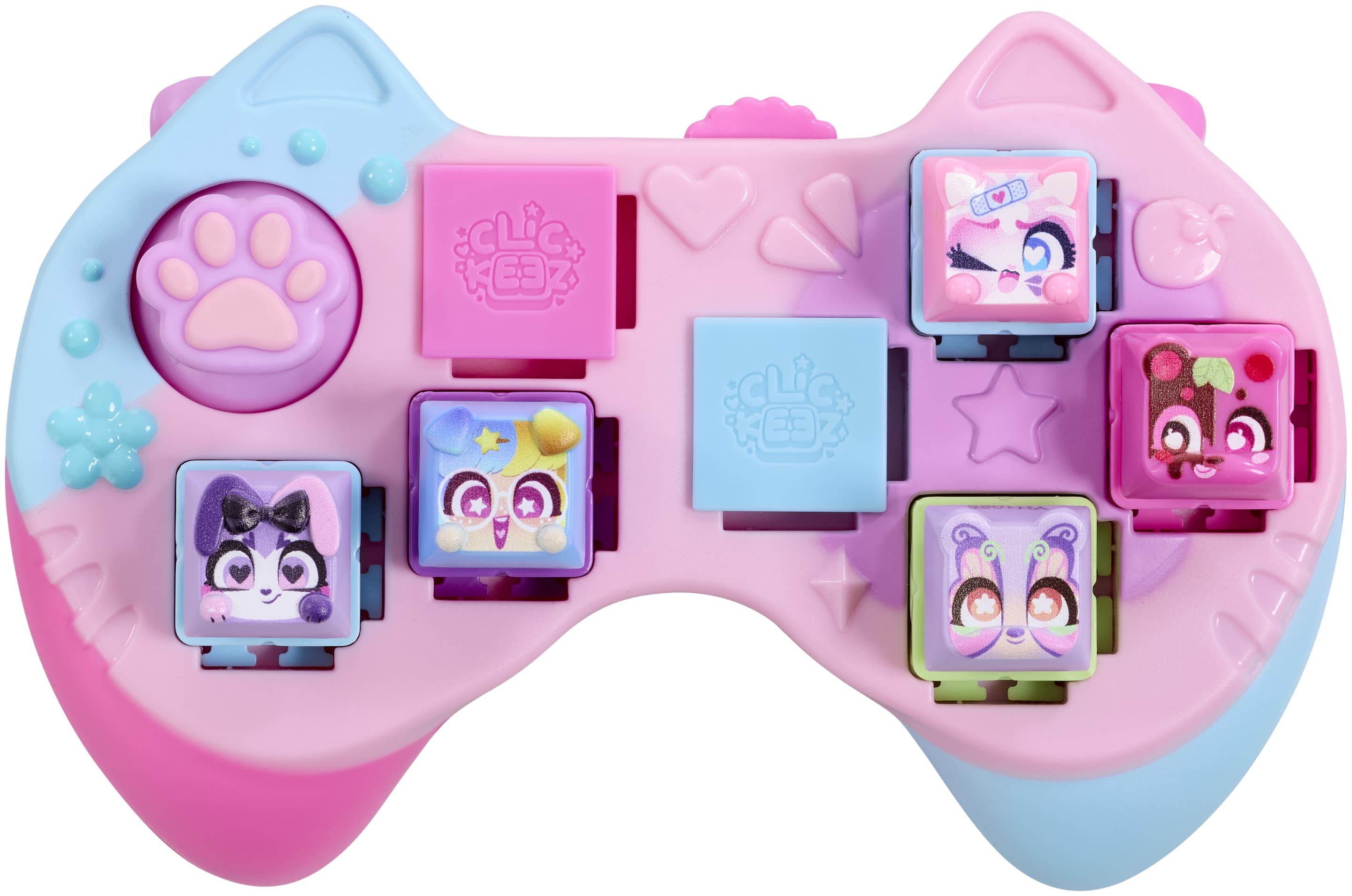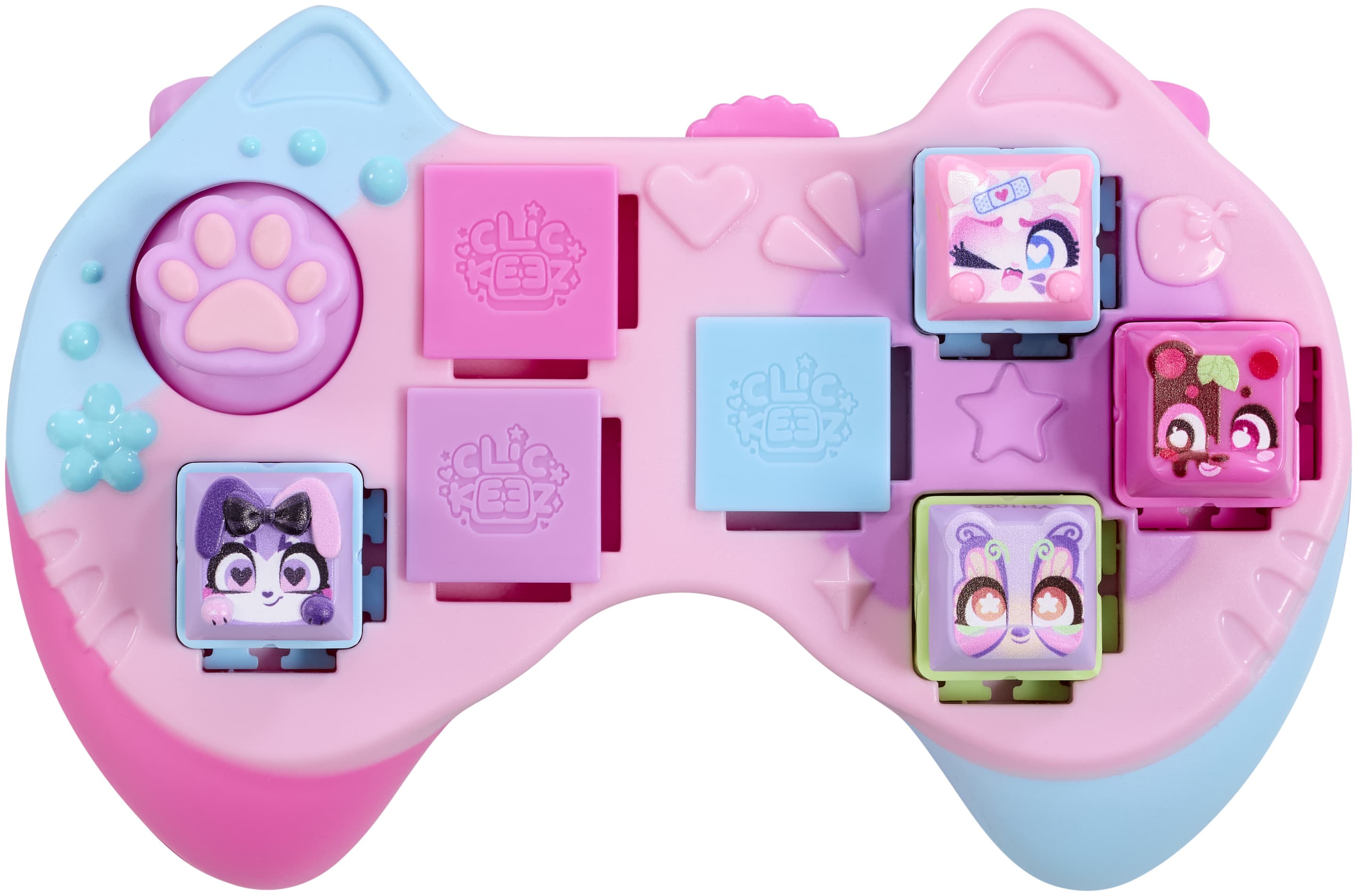 Stelle deine Clickeez auf einem coolen Controller aus! Dieser stylische Controller bietet Platz für deine Sammlung und fühlt sich beim Drücken der Tasten wie ein echtes Gerät an. Das Set enthält 5 Clickeez und einen nich tfunktonalen Controller. Die niedlichen Clickeez Figuren mit klickendem Fidget-Mechanismus lassen sich sammeln, tauschen und kreativ präsentieren.