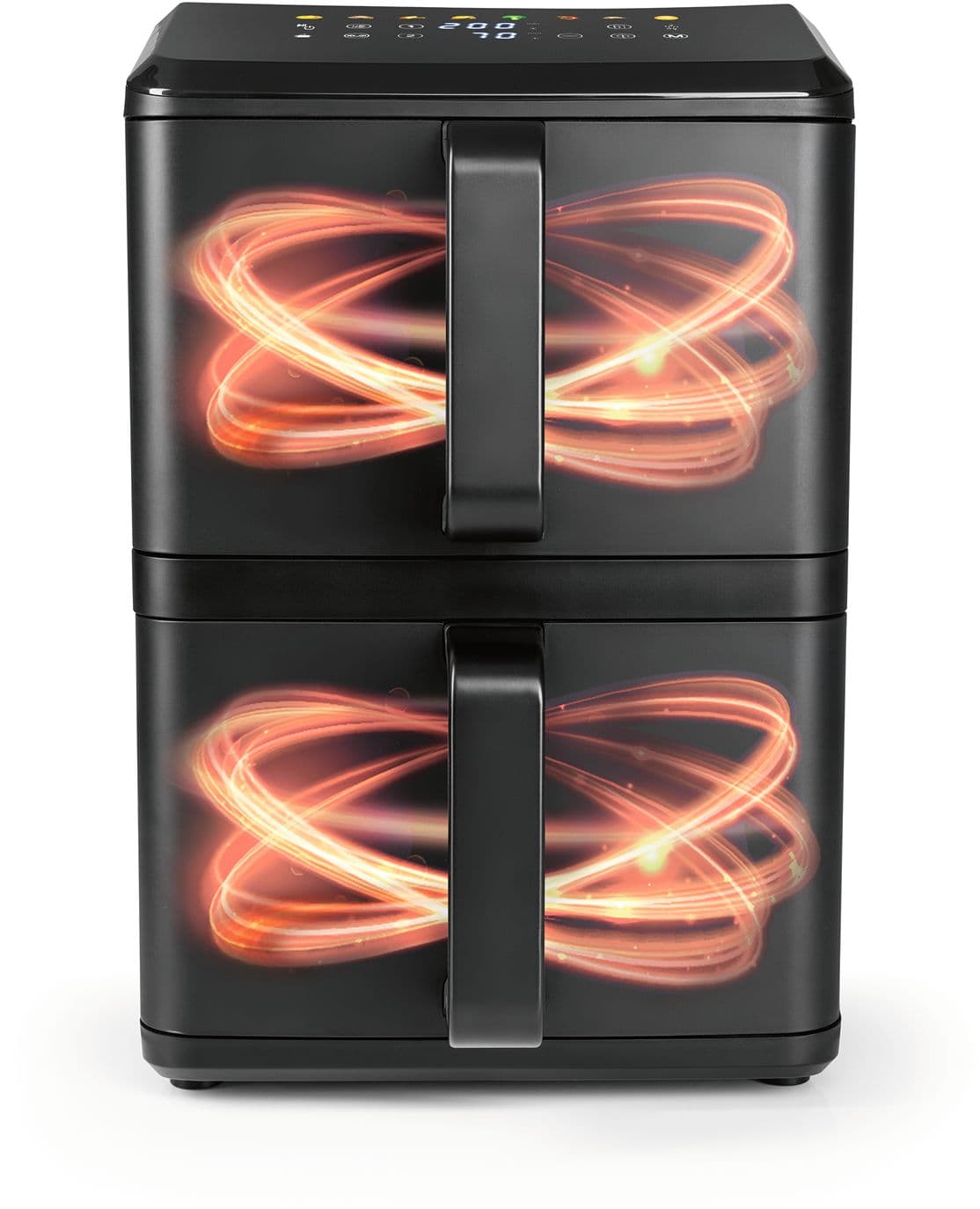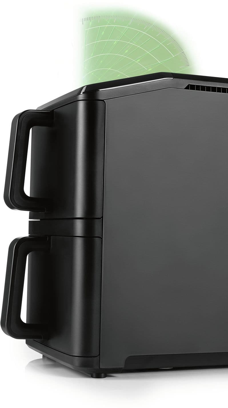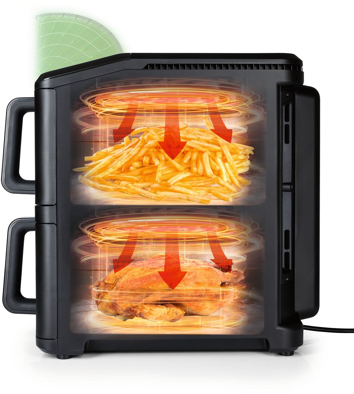 | Lieferumfang | 1x vertikale Doppelheißluftfritteuse, 2x Körbe, 2x Einlegeroste |