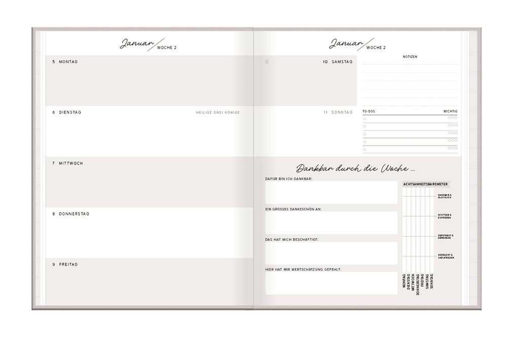 Achtsam durch das Jahr und jeden Monat eine neue Challenge? Gewohnheiten tracken oder Gefühlslagen beleuchten? Mit dem Lady-Terminplaner lassen sich Woche für Woche kleine und große Momente dokumentieren.