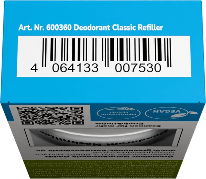 Du erhältst: 1 Nachfüller Deodorant classic (funktioniert nur mit einem bereits vorhandenen GREENDOOR Deodorant Nachfüllsystem)