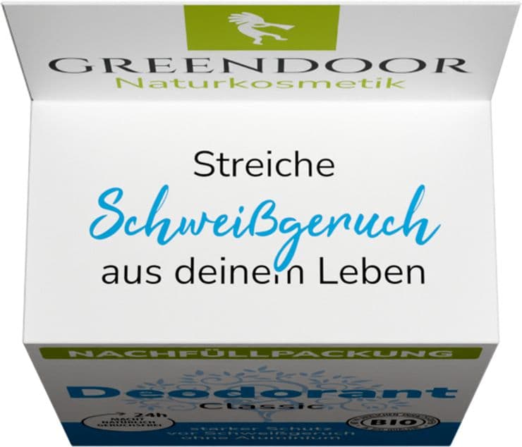 Streiche Schweißgeruch aus deinem Leben – mit dem GREENDOOR Deodorant Nachfüllsystem. Das innovative hoch wirksame Deodorant System mit 24h+ Schweißgeruch-Freiheit setzt neue Maßstäbe in der nachhaltigen und aluminiumfreien Körperpflege.