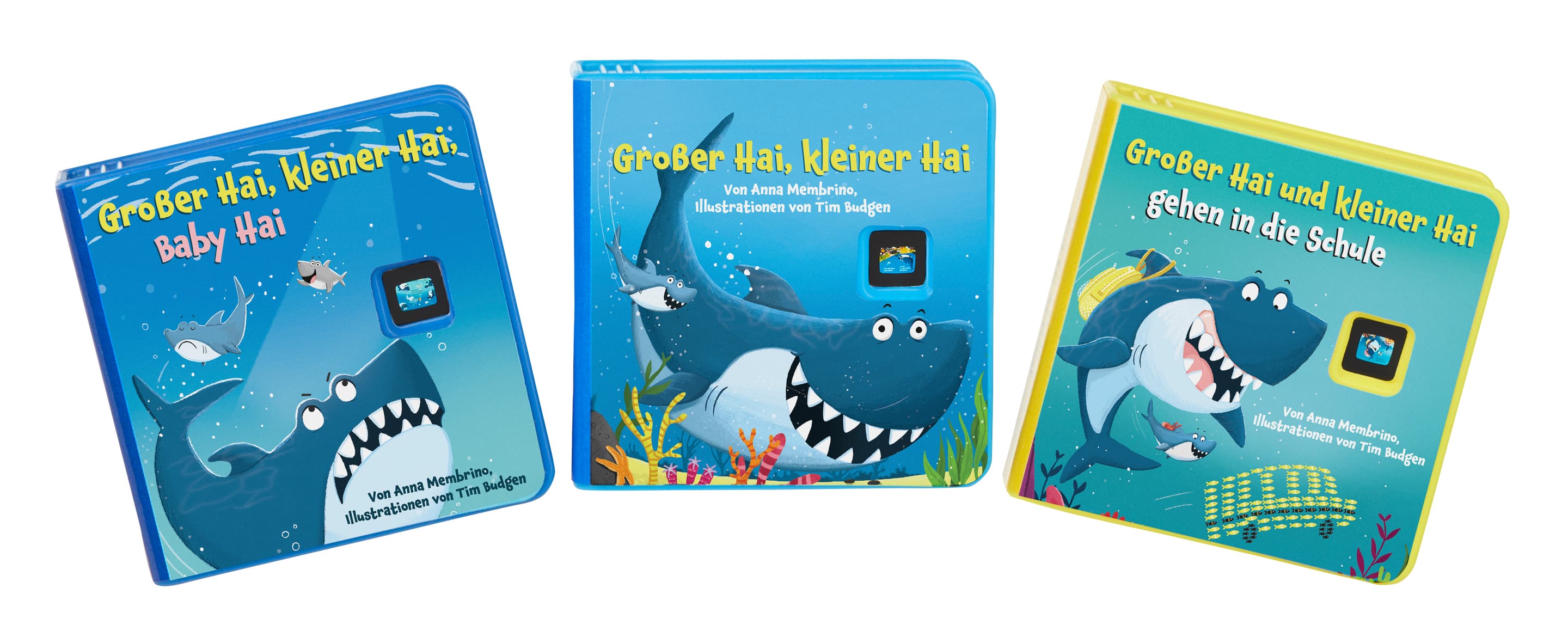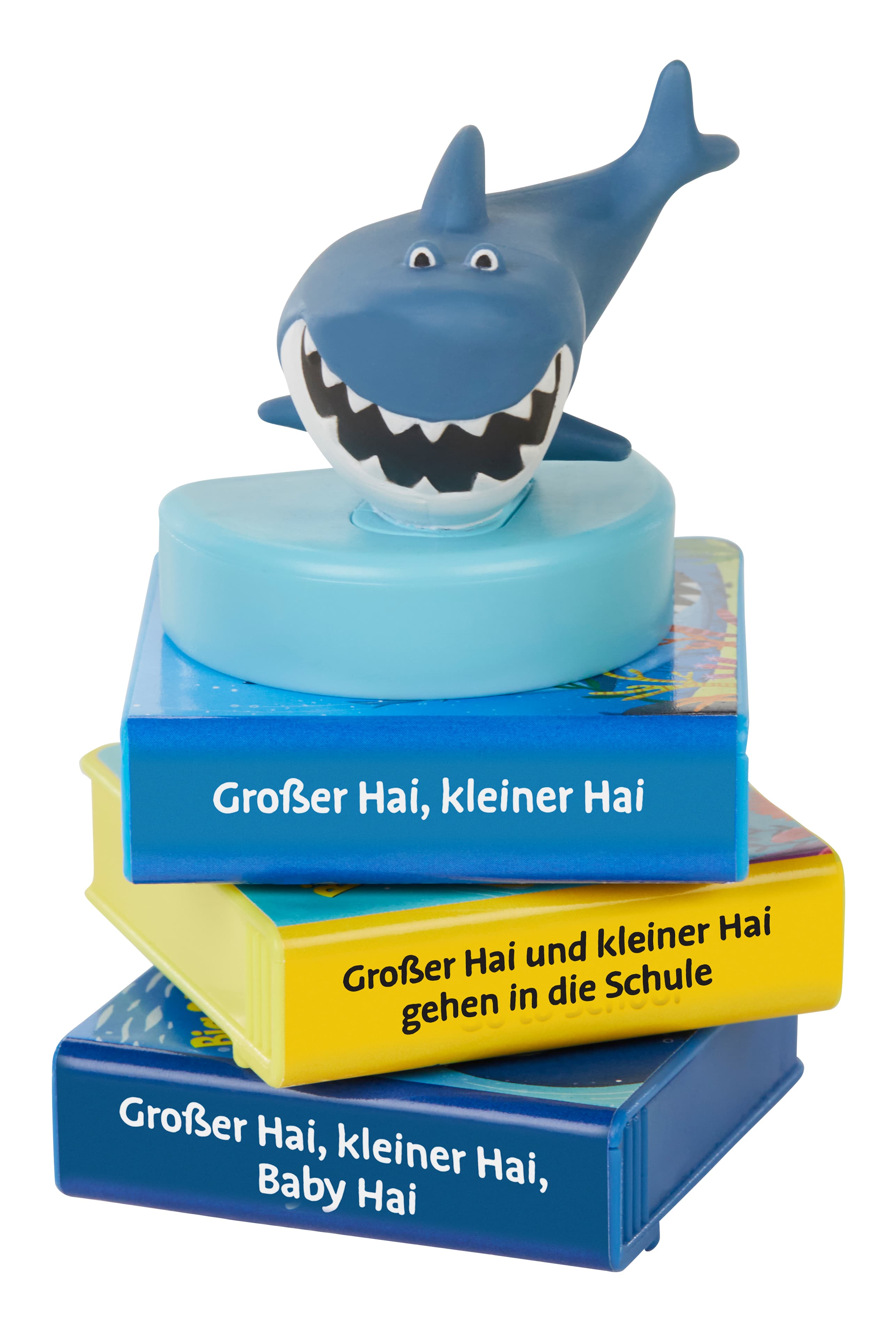 ● Mit der Story Dream Machine die lustigen Geschichten des großen und kleinen Hais, anhören und vorlesen, während sie hell an der Wand leuchten