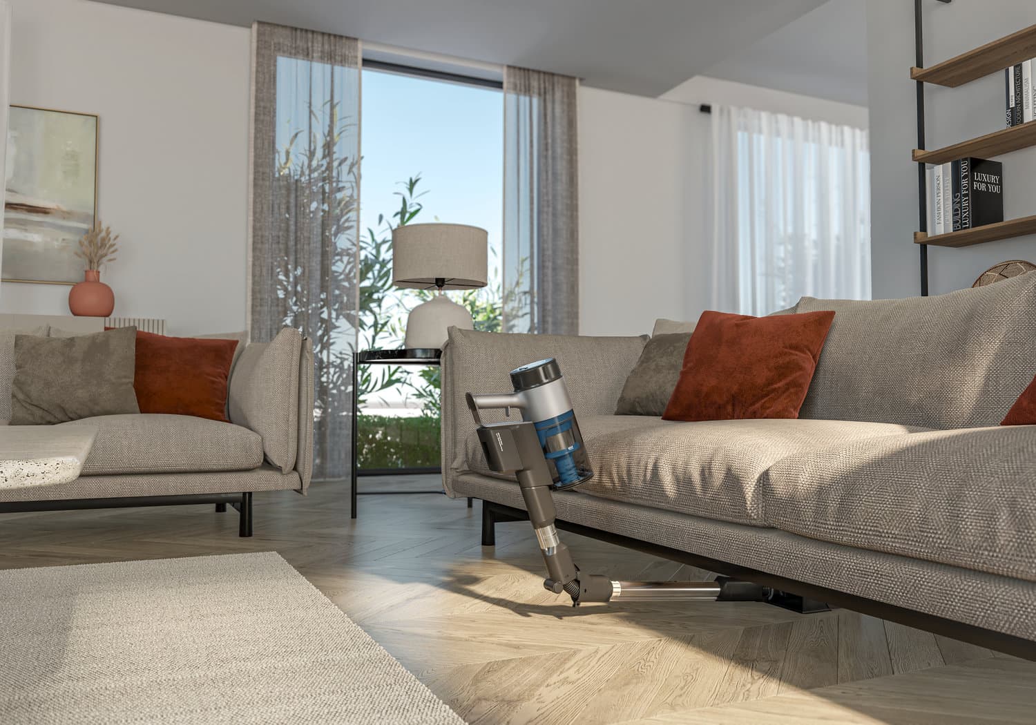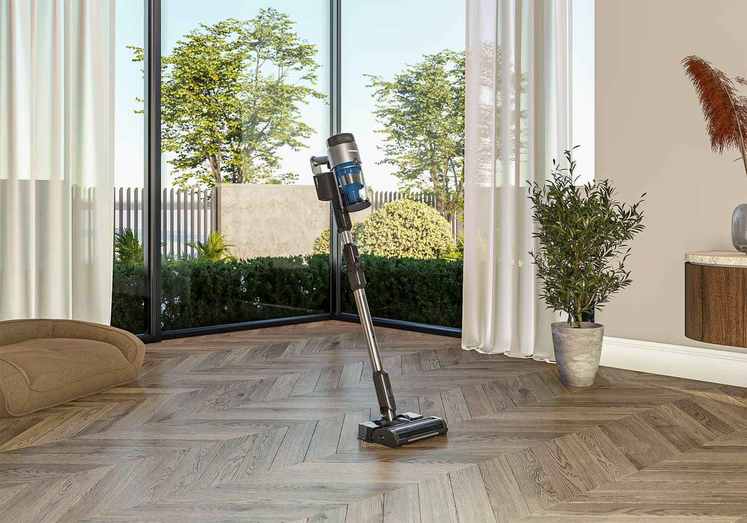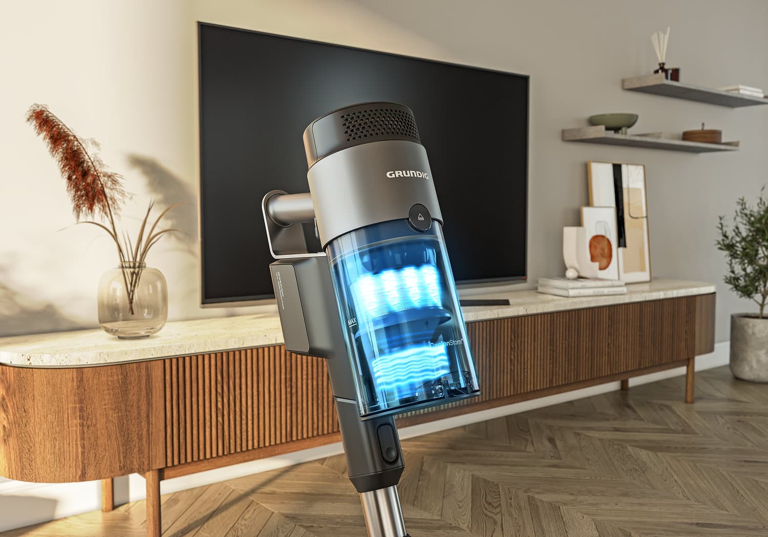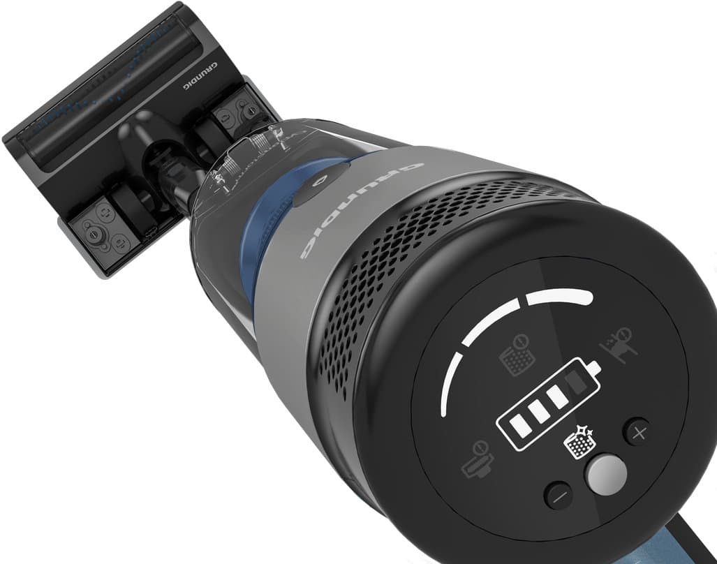 Die CyclonStorm-Technologie sorgt für eine effiziente Staubaufnahme und -filterung, der EPA E12 Filter sorgt für eine hygienisch saubere Raumluft. Das LED-Display zeigt Akkustand über Akkustand, Saugkraftstufe, Filterstatus und mögliche Luftblockaden.