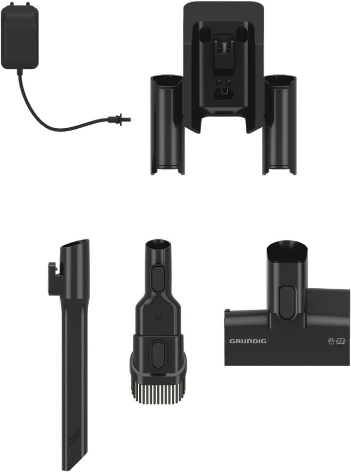 | Lieferumfang | 1 x Staubsauger, 1 x motorisierte Tierhaarbürste, 1 x Fugendüse, 1 x Moppaufsatz mit zwei Wischtüchern, 1 x 2-in-1-Düse mit breiter Reinigungsdüse und integrierter Staubbürste, 1 x Wandhalterung, 1 x Bedienungsanleitung |