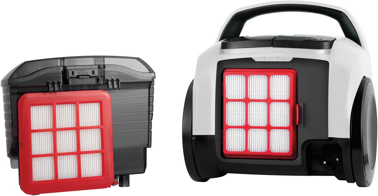Mit 800 W Motorleistung arbeitet der beutellose Zyklon-Staubsauger kraftvoll, aber leise (nur 76 db(A)). Bequemes Saugen durch langes Teleskoprohr (94 cm) aus Metall zur individuellen Einstellung auf die jeweilige Körpergröße und großem Staubbehälter mit 1,8 l. Sehr einfaches, komfortables und hygienisches Entnehmen und Leeren des Behälters. DustSeal Technologie lässt keinen Staub entweichen. Kombibürste per Fußtaste umschaltbar für alle Bodenbeläge geeignet. Komfortabler 7,5 m Aktionsradius. Top-Hygiene mit abwaschbarem EPA E12 Filter und EPA E10 Motorschutzfilter.