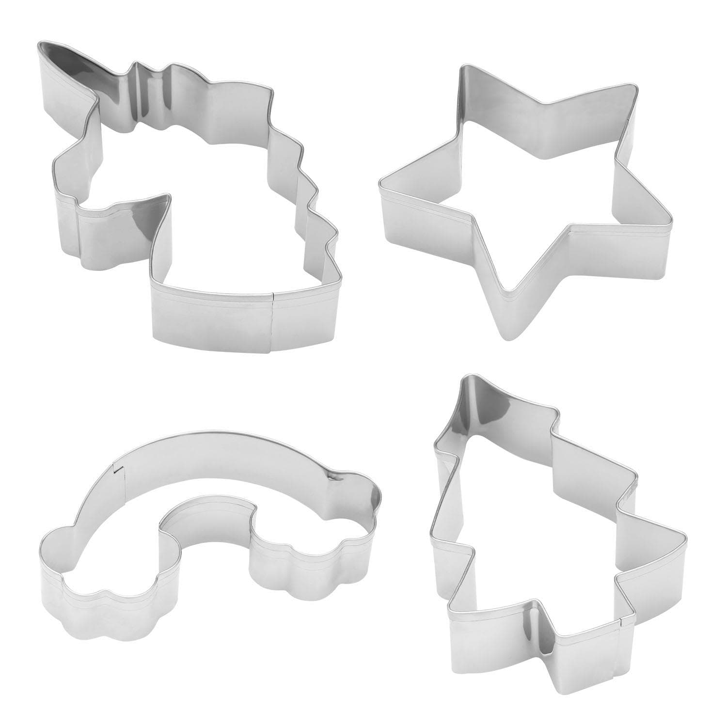 - Keksausstecher Set bestehend aus Einhorn, Stern, Tannenbaum und Regenbogen