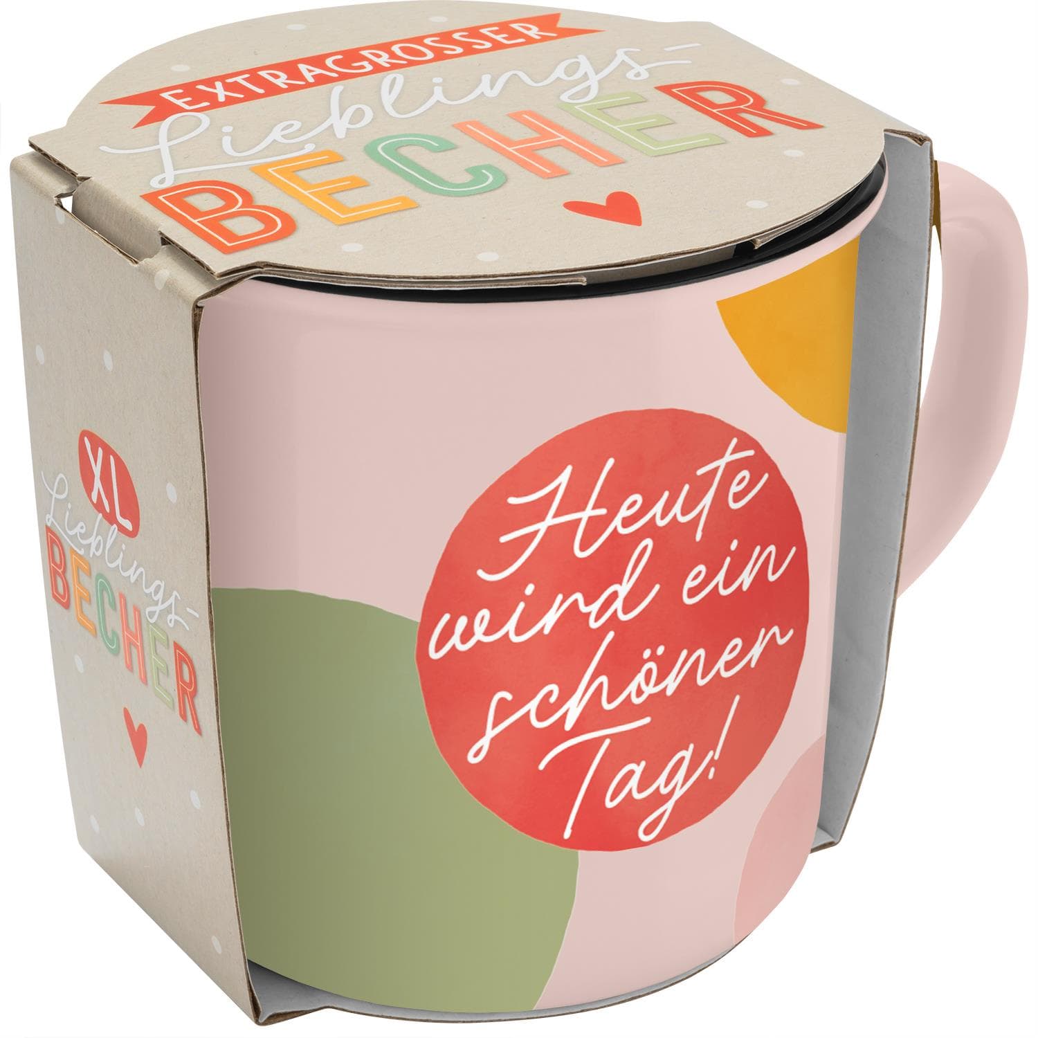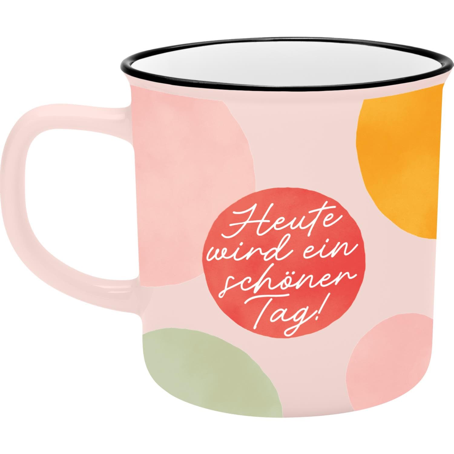 XL-Becher in Emaille Optik mit Motivdruck: Heute wird ein schöner Tag!