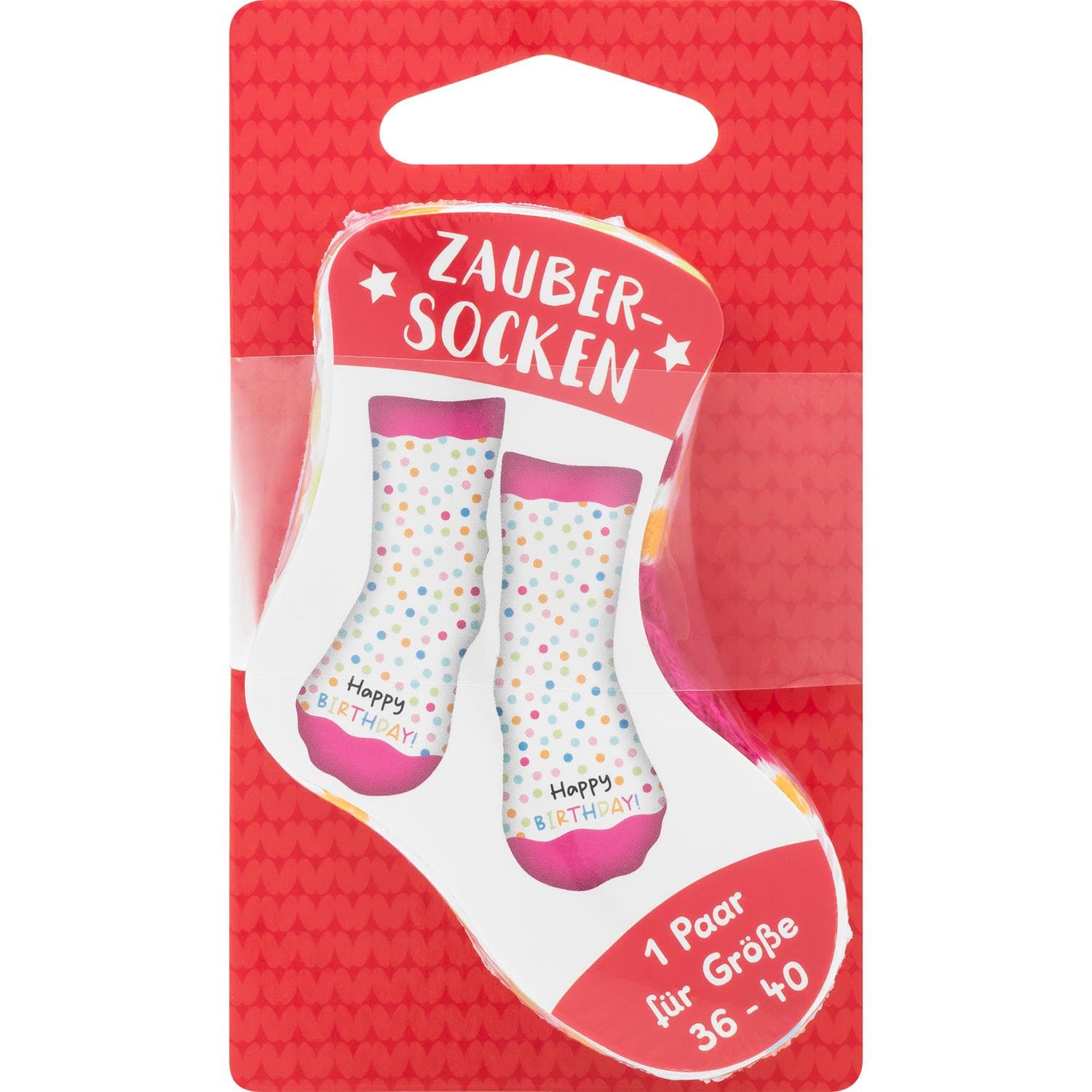 • 1 Paar magische Zaubersocken mit Motiv: »Happy Birthday«