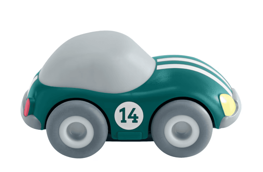 Vollgas voraus! Diesem grünen Flitzer aus der HABA Cars-Serie geht garantiert nie die Puste und erst recht nie der Akku aus: Das intelligente Schwungmotorsystem kommt nämlich ganz ohne Batterien aus. Dem Spielspaß in Dauerschleife steht also nichts im Weg! Action pur gibt’s auf allen glatten Flächen und vor allem auf der HABA Cars Rennstrecke. Spaß ohne Ende und auch mal aus der Bahn fliegen? Kein Problem! Das robuste Spielzeugauto aus nachhaltig recyceltem Kunststoff macht so gut wie alles mit, was sich kleine Auto-Fans ab 2 Jahren in den Kopf setzen.