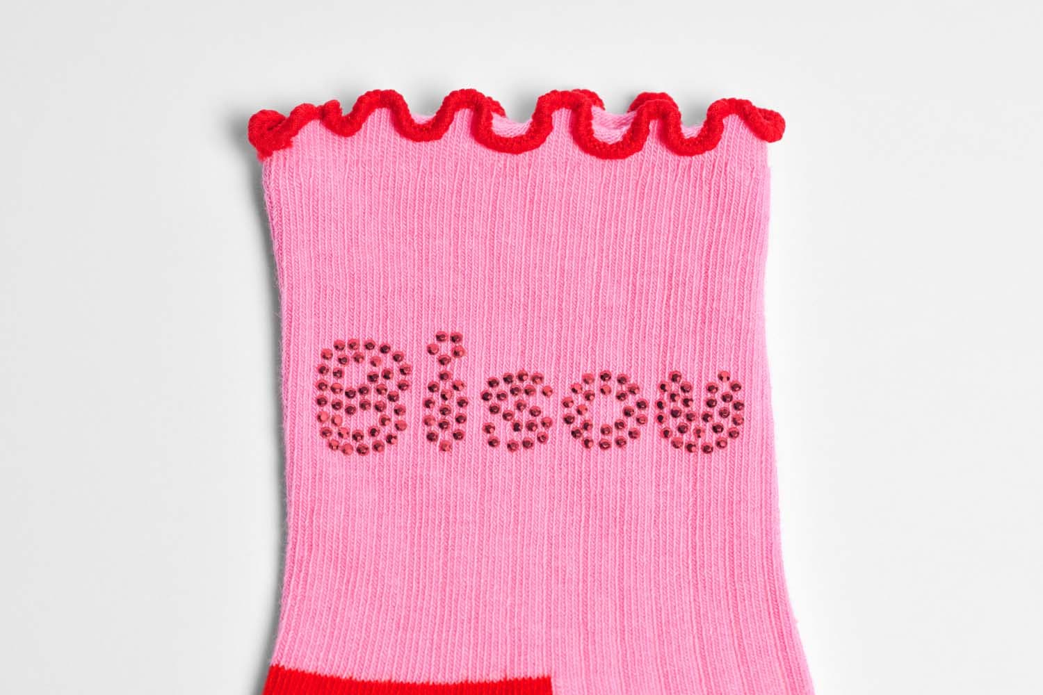 Bring mit der Bisou Mini Crew Socke einen Hauch Magie an deine Füße! Das zarte Rosa, das verspielte Rüschenbündchen und das funkelnde "Bisou" aus Strasssteinen sind wie Konfetti für dein Outfit – Gute-Laune-Garantie inklusive. Ob zu Sneakern, Heels oder einfach so: Diese Socke feiert deinen individuellen Style und setzt jedem Look das i-Tüpfelchen auf.