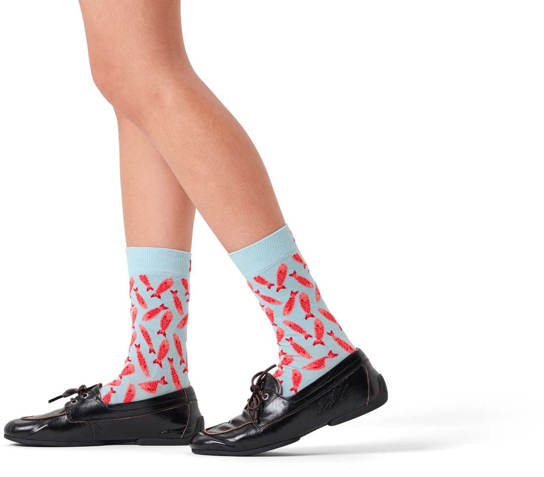 Spring mit uns kopfüber ins bunte Sardinen-Vergnügen! Bei unserer Sardine Socke tummeln sich kleine Ozean-Helden in einem Muster, das sofort Wellen schlägt – und alle Blicke auf sich zieht. Für alle, die ihr Inneres gerne nach außen tragen: Dieses originelle Design fischt Komplimente wie von selbst und bringt ordentlich Persönlichkeit an den Fuß. Mit ihrem ausgefallenen Look verpasst du jedem Outfit eine Portion Meeres-Charme – und ein Augenzwinkern gibt's gratis dazu.